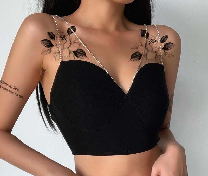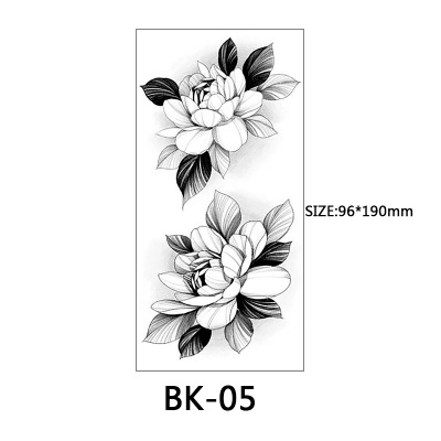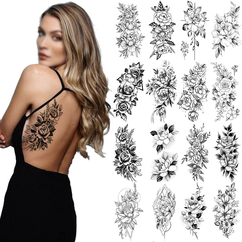Pencil Sketch Flower Temporary Tattoos Sticker Women's Fashion Body Art Arm Wasit Tatoos Fake Black Rose Waterproof Tattoo Decal