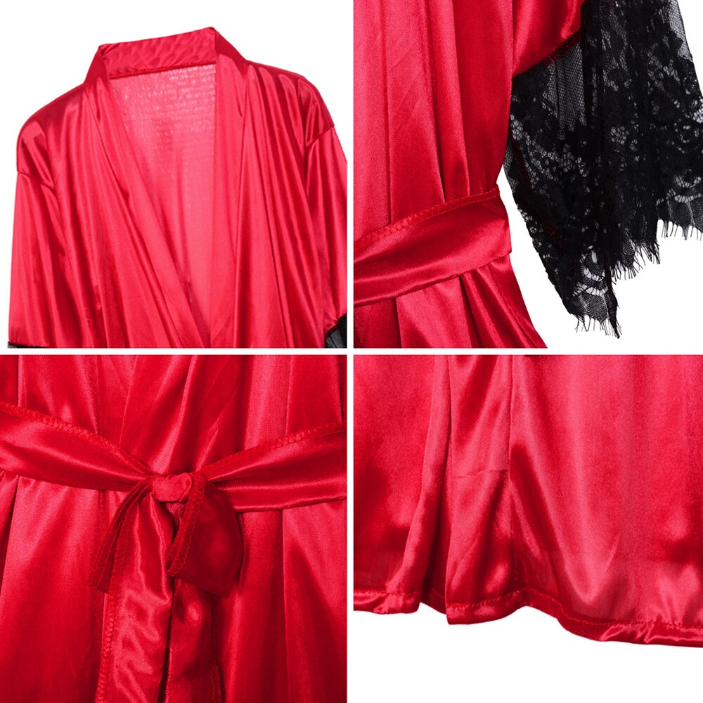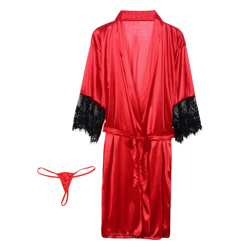 Plus Size Fashion Sexy Lace Satin Sleepwear Women Ladies Night Dress Lingerie Nighties V-neck Nightdress Lace Up Loose Nightgown .