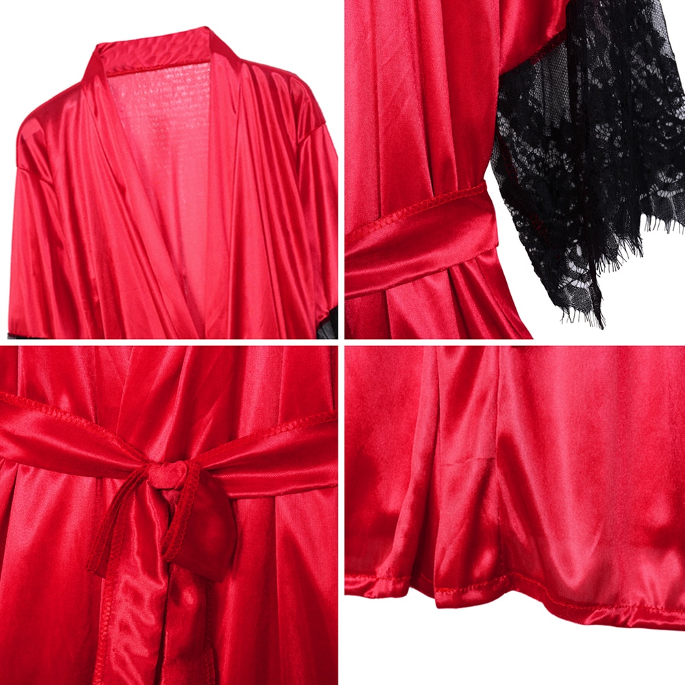 Plus Size Fashion Sexy Lace Satin Sleepwear Women Ladies Night Dress Lingerie Nighties V-neck Nightdress Lace Up Nightgown