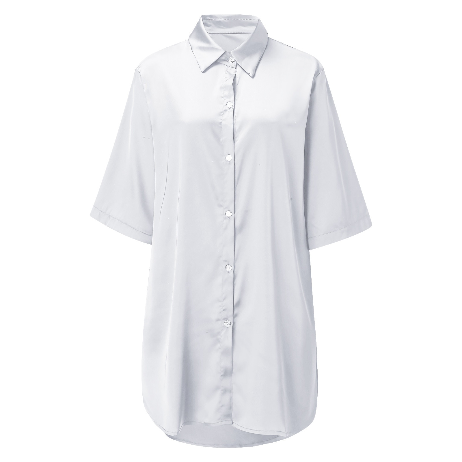 Women's Satin 3/4 Sleeve Button Down Notched Neck Nightgown Sleepwear