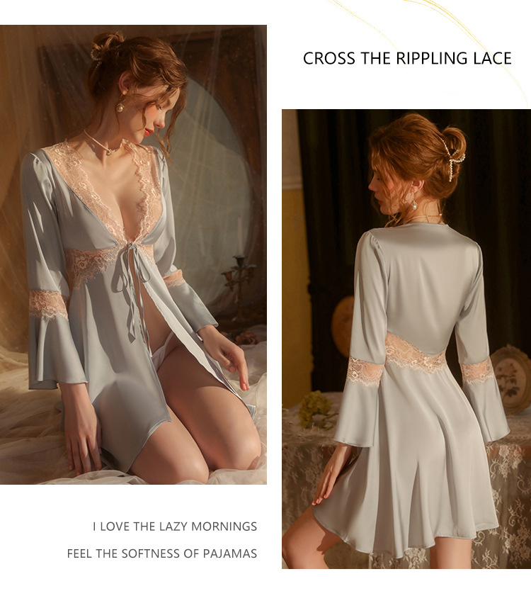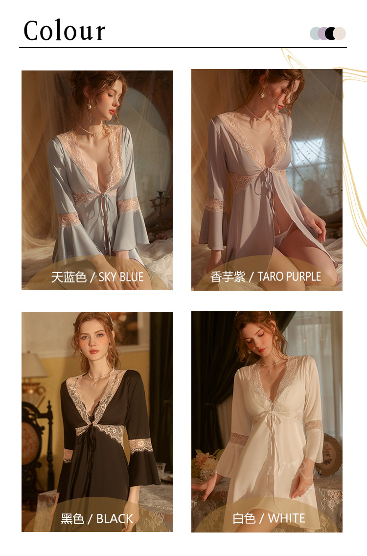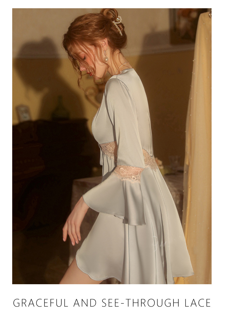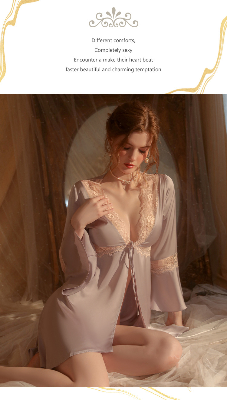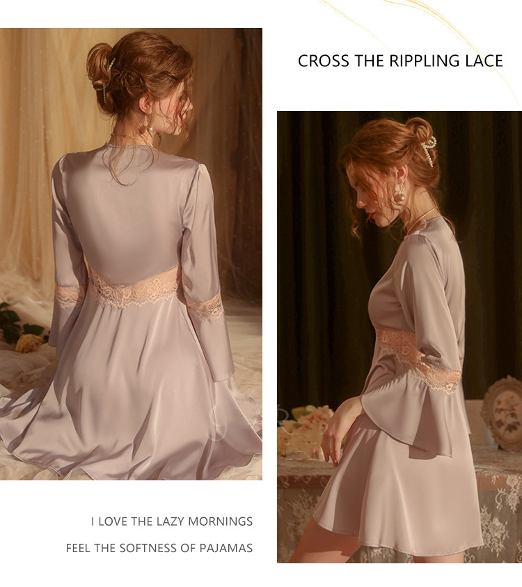 Purple Lotus Sleeve Cardigan Evening Gown Women Llingerie Sexy Wedding Pajamas Bathrobe Slit Robe Bridal Pajamas Women