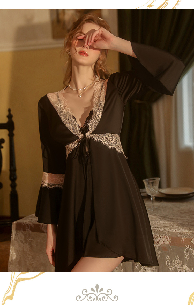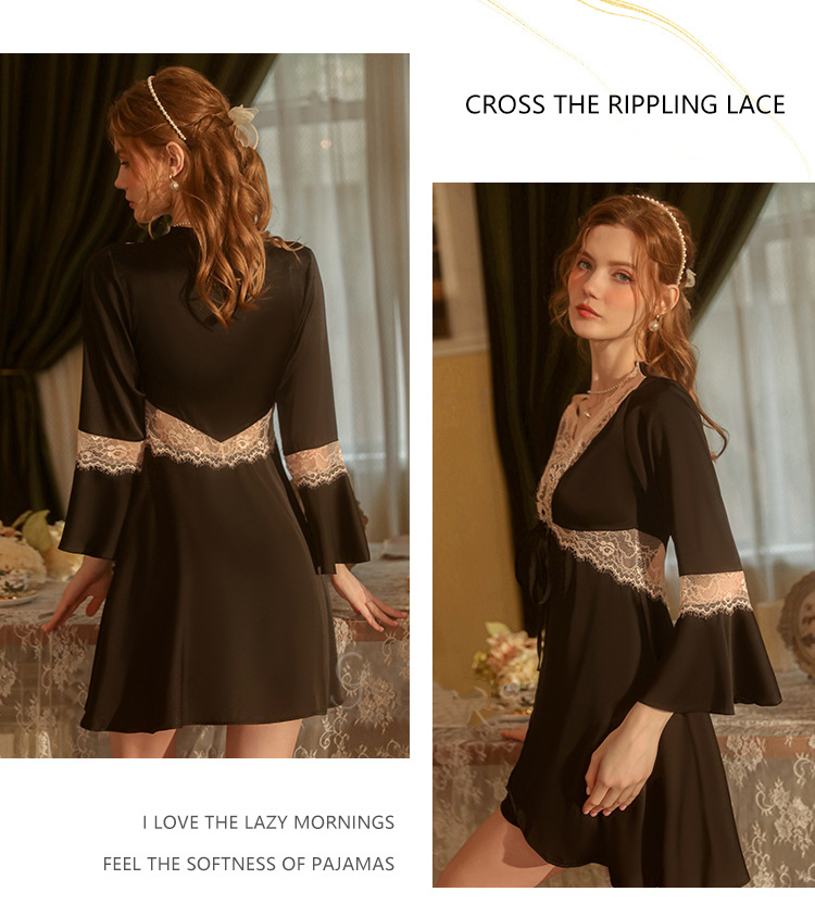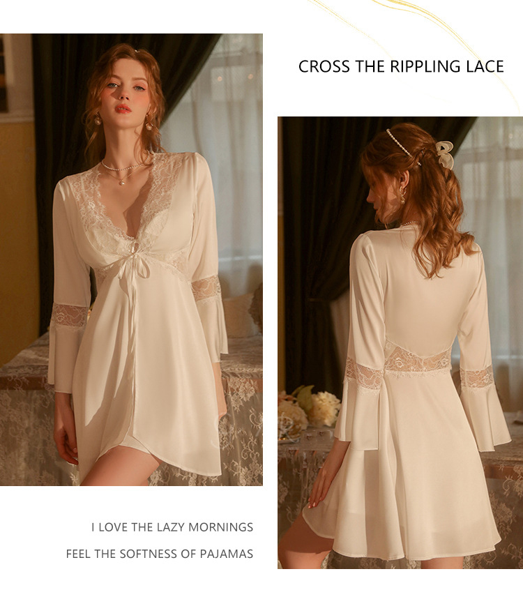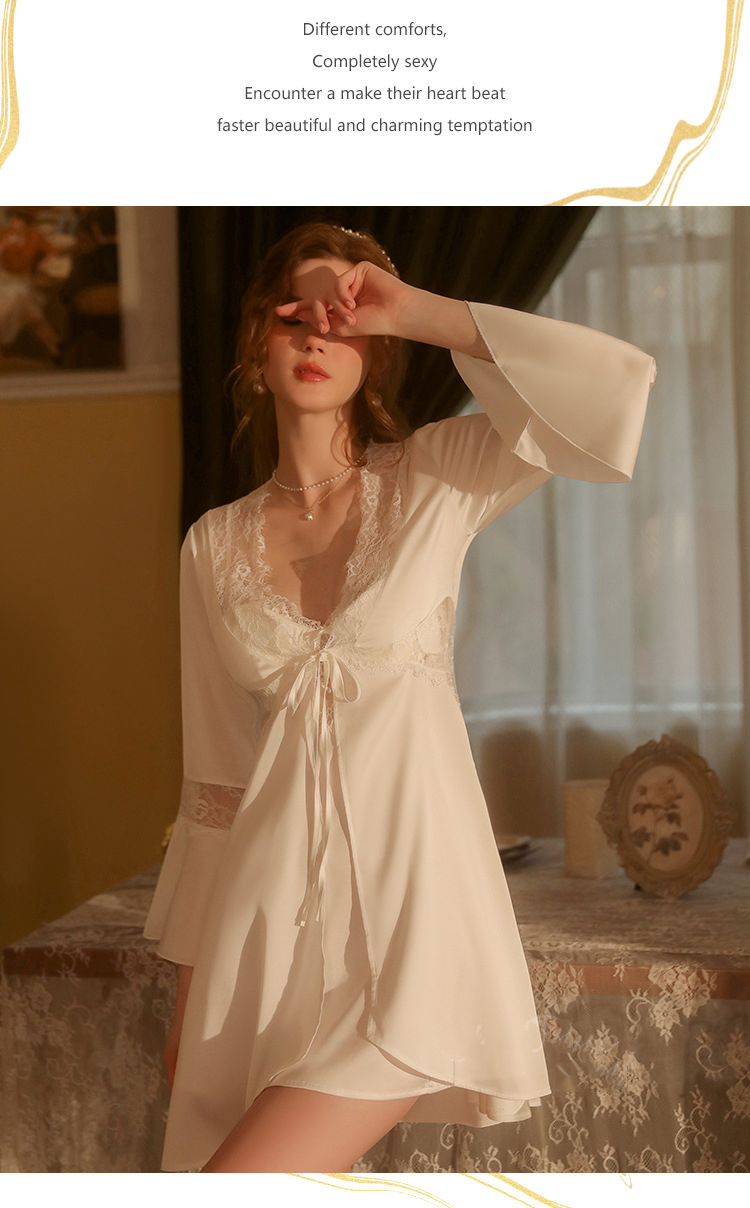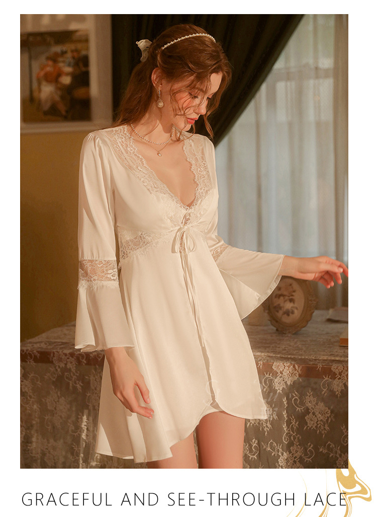 Purple Lotus Sleeve Cardigan Evening Gown Women Llingerie Sexy Wedding Pajamas Bathrobe Slit Robe Bridal Pajamas Women