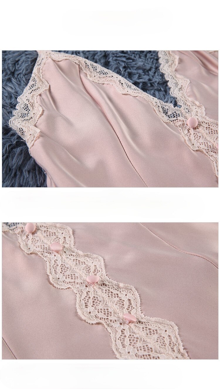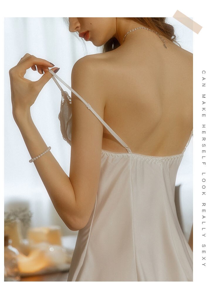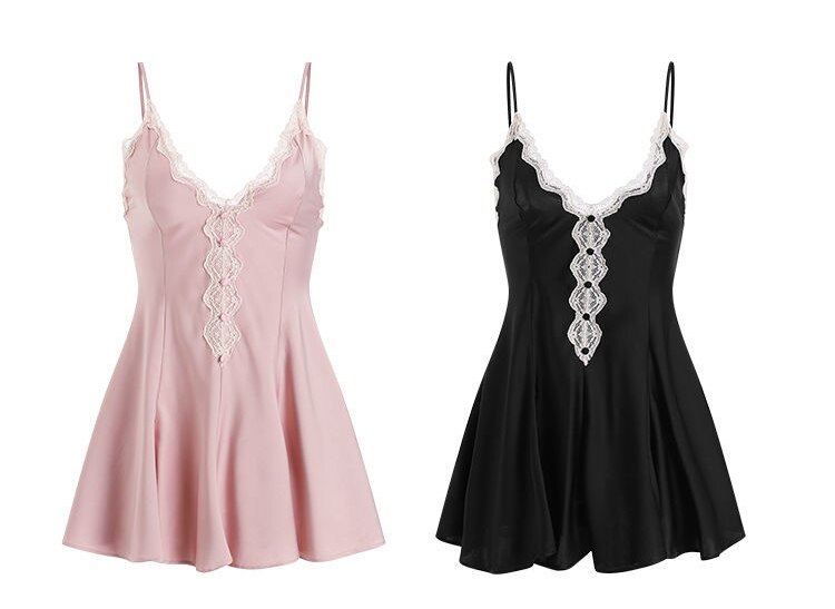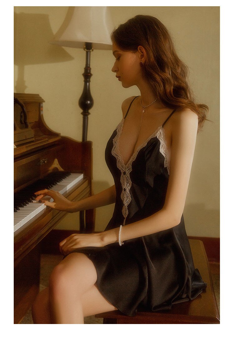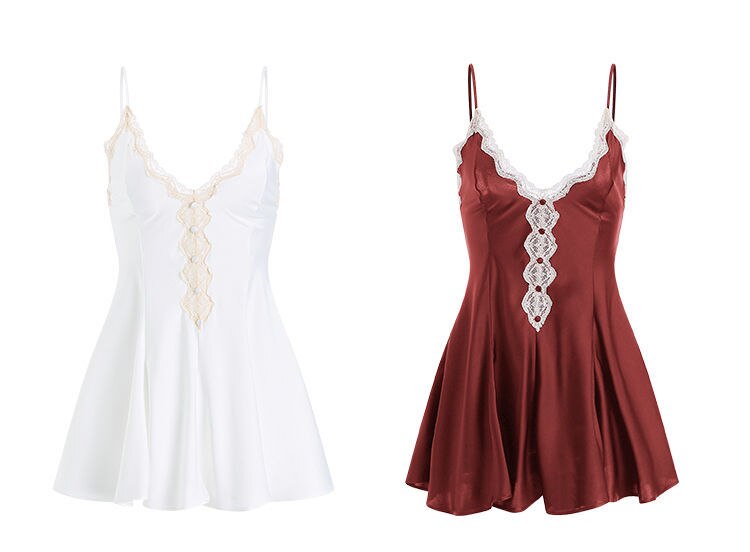 QWEEK Silk Nightgown Women Satin Sexy Sleepwear White Dresses Ladies Lace Nightwear French Elegant Homewear Mini Skirts