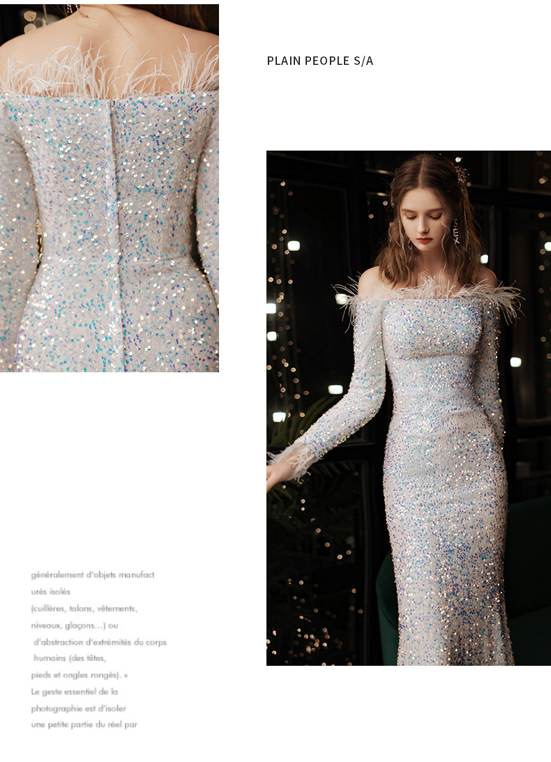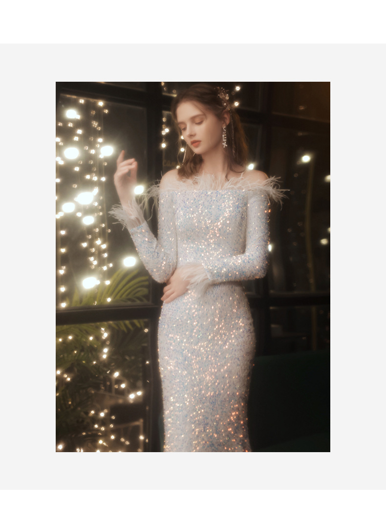 Sequined evening dress 2022 new popular annual meeting fishtail skirt light luxury niche high-end banquet temperament host