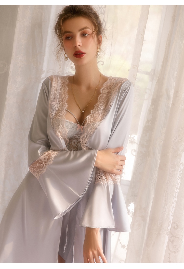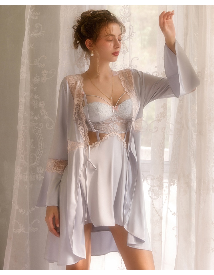 Sexy Cutout Women's Pajamas Lace Sling Pajamas with Panties Women's Backless Satin Dresses Pajamas Seduction Night Dresses