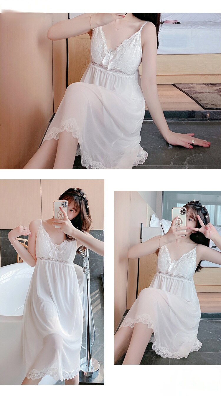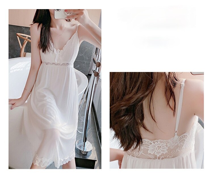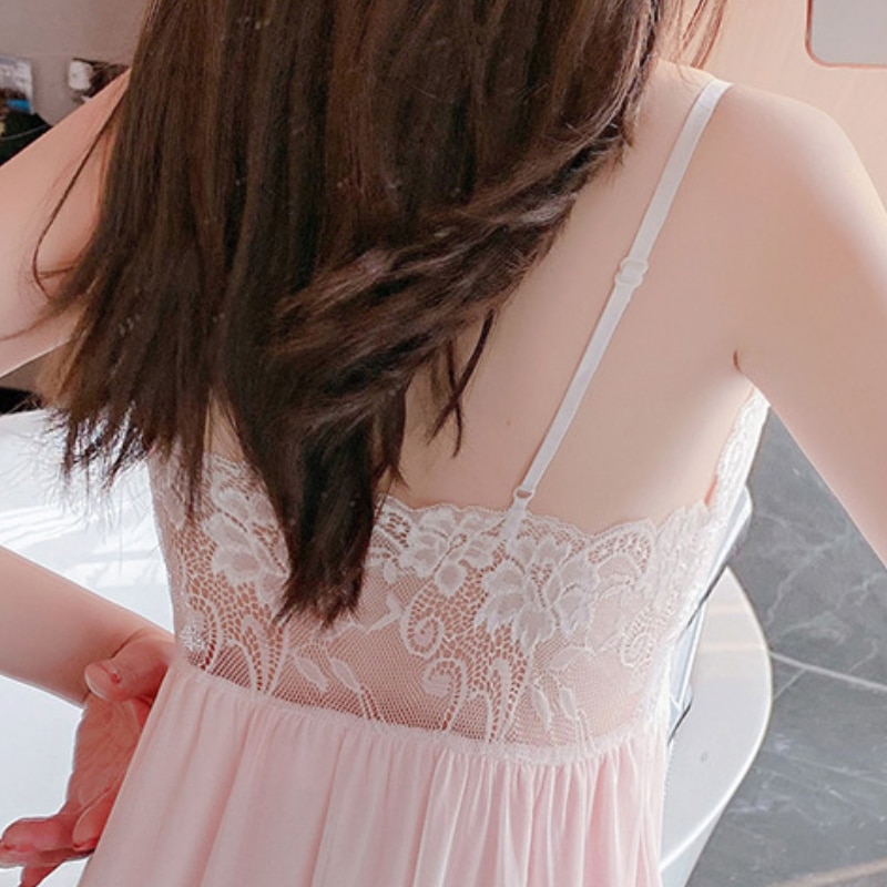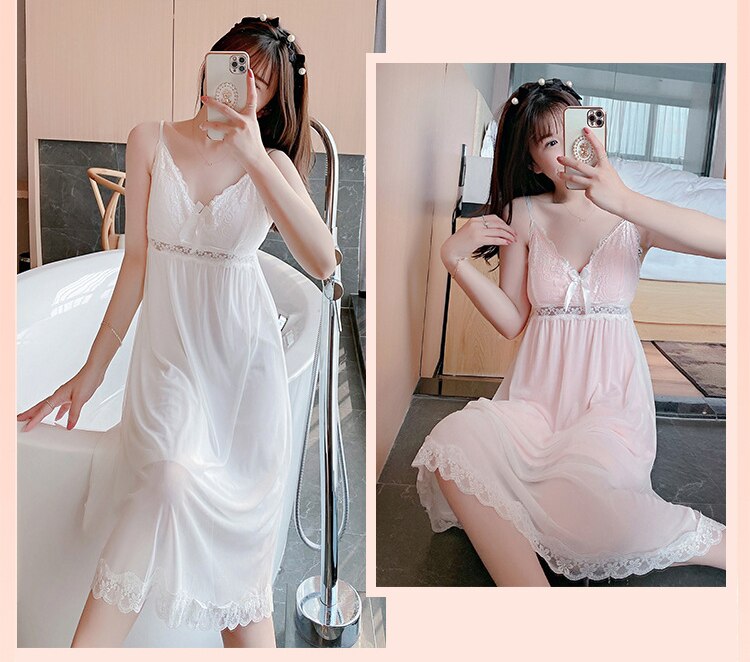 Sexy Lace Nighty Women White Pink Modal Night Dress Summer Sleeveless Backless Sleepwear Vintage Kawaii Nightgown Pads Nightwear