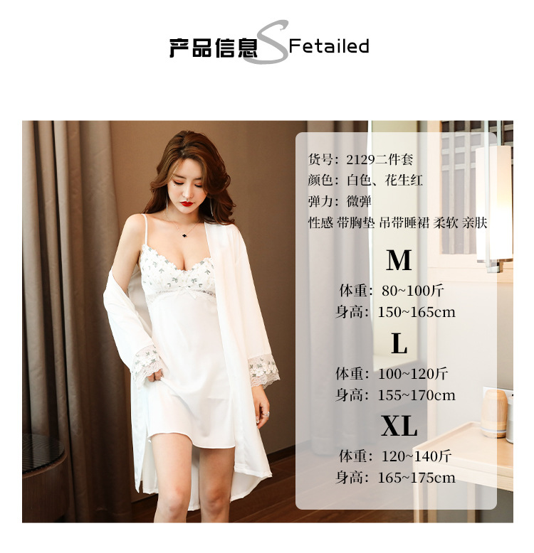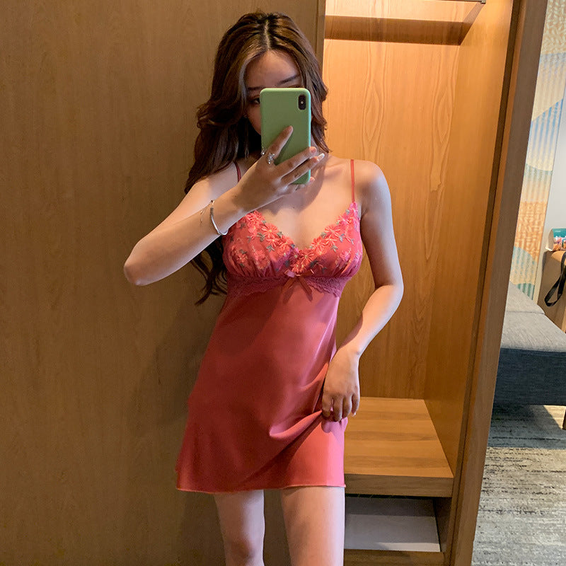 Sexy pajamas women summer thin ice ribbon chest pad lace suspenders nightdress two-piece 2021 new home service