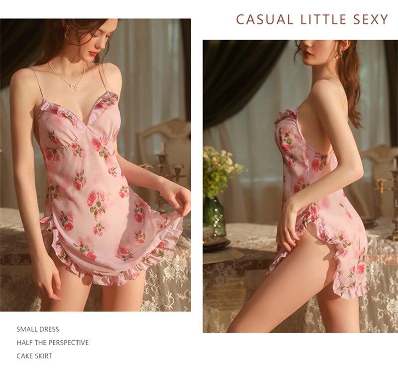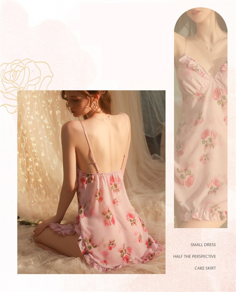 Spring and summer sexy slit private room pajamas backless suspender nightdress home service suit