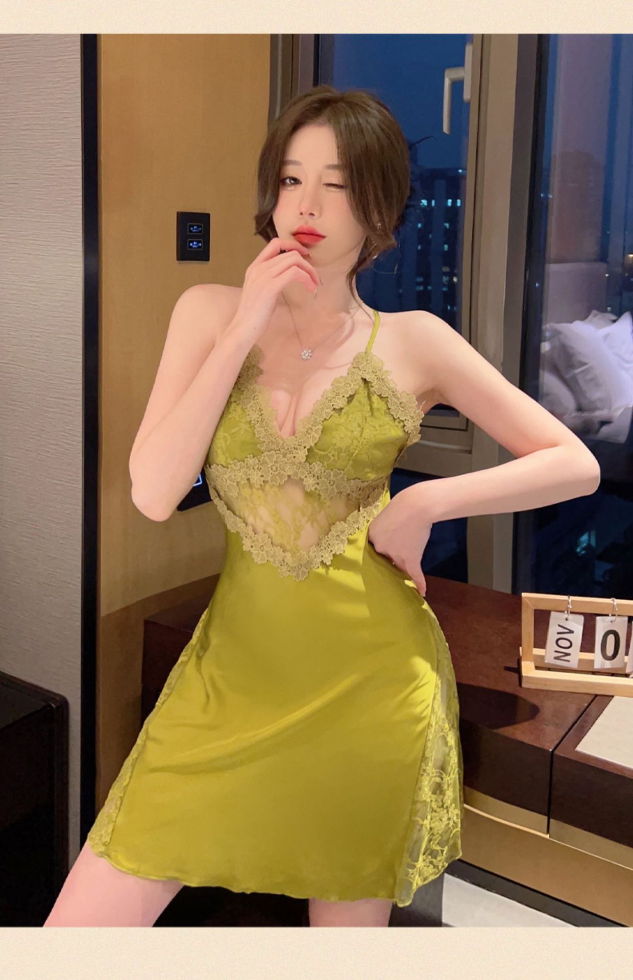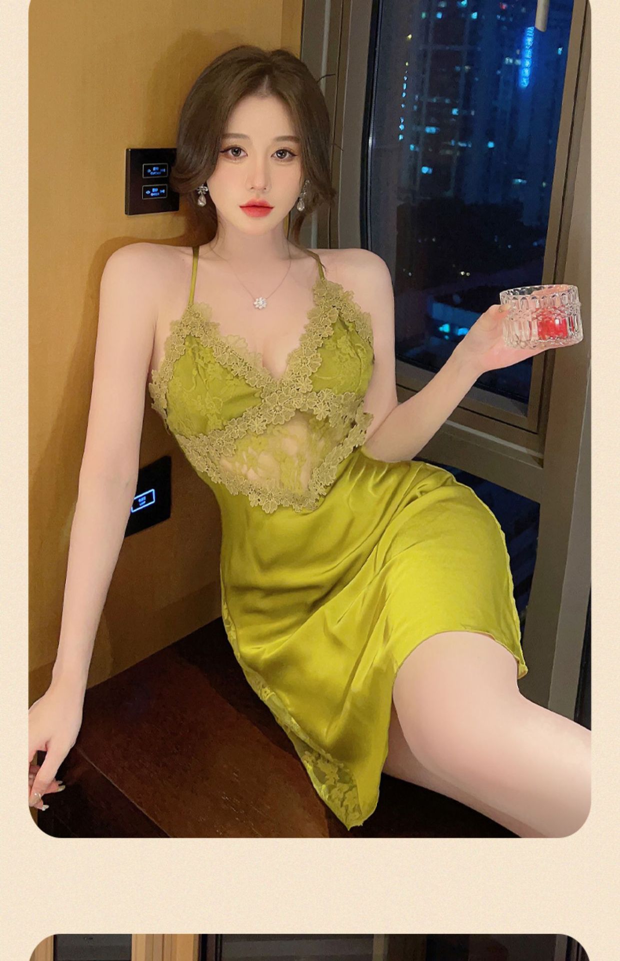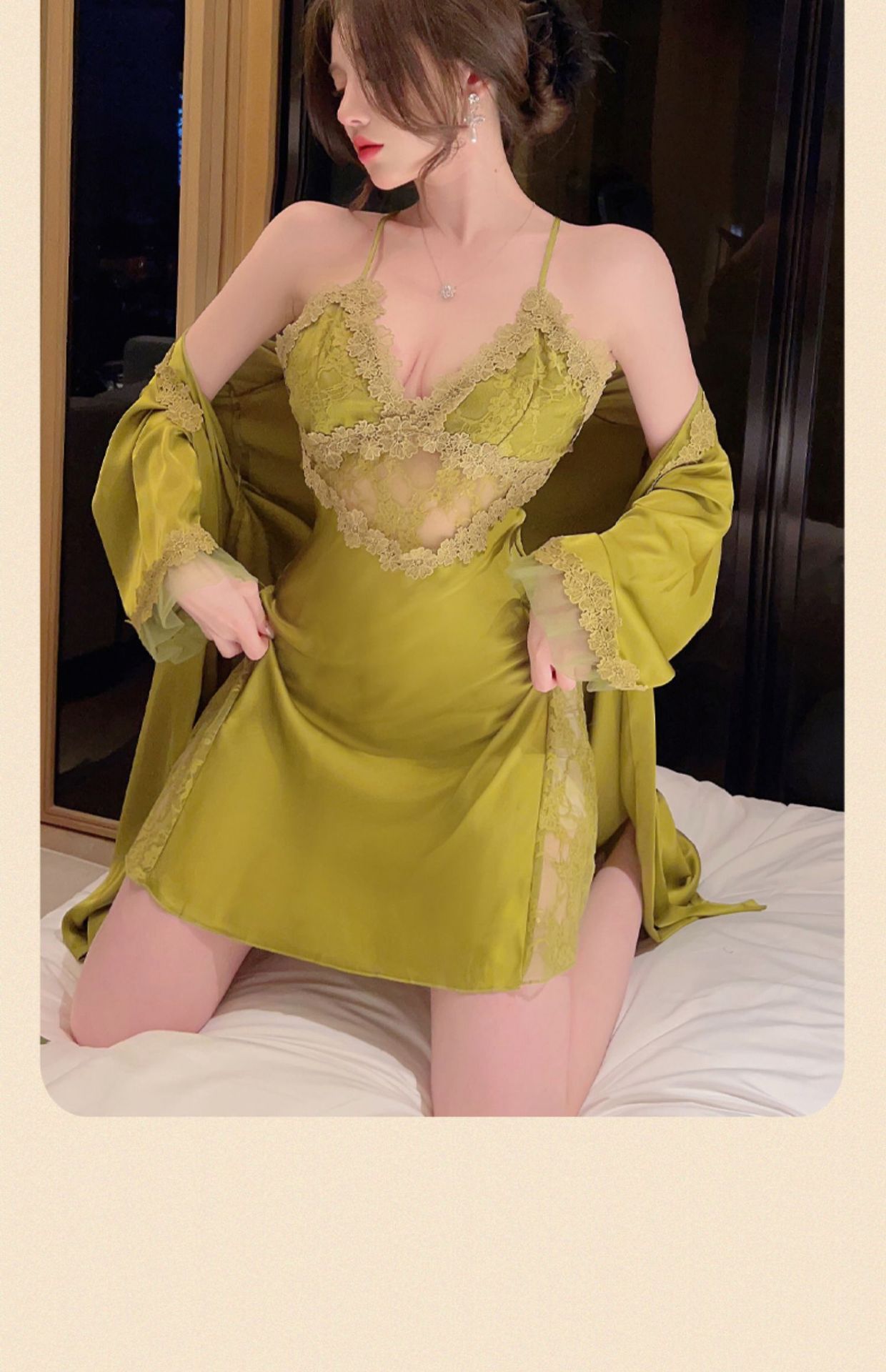 Sexy pajamas women's summer ice silk 2023 new style with chest pad lace suspenders nightdress set nightgown two-piece set