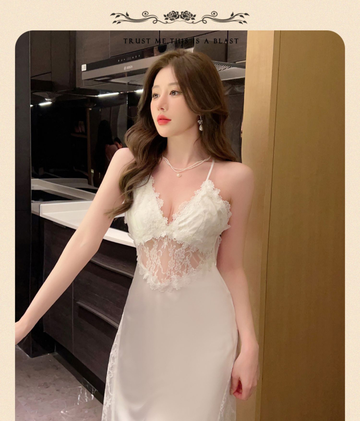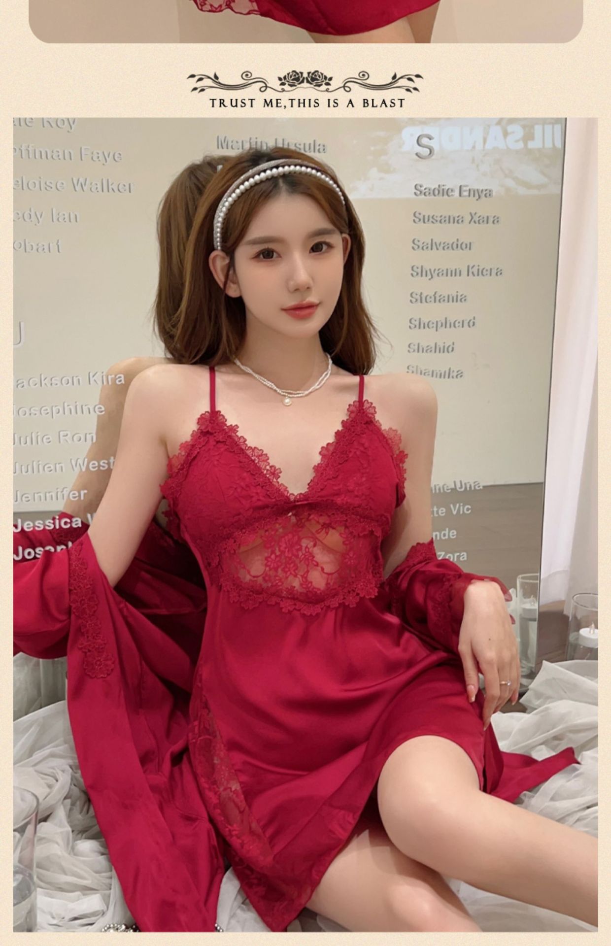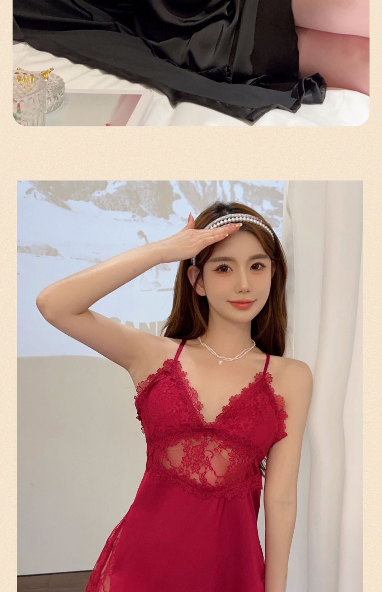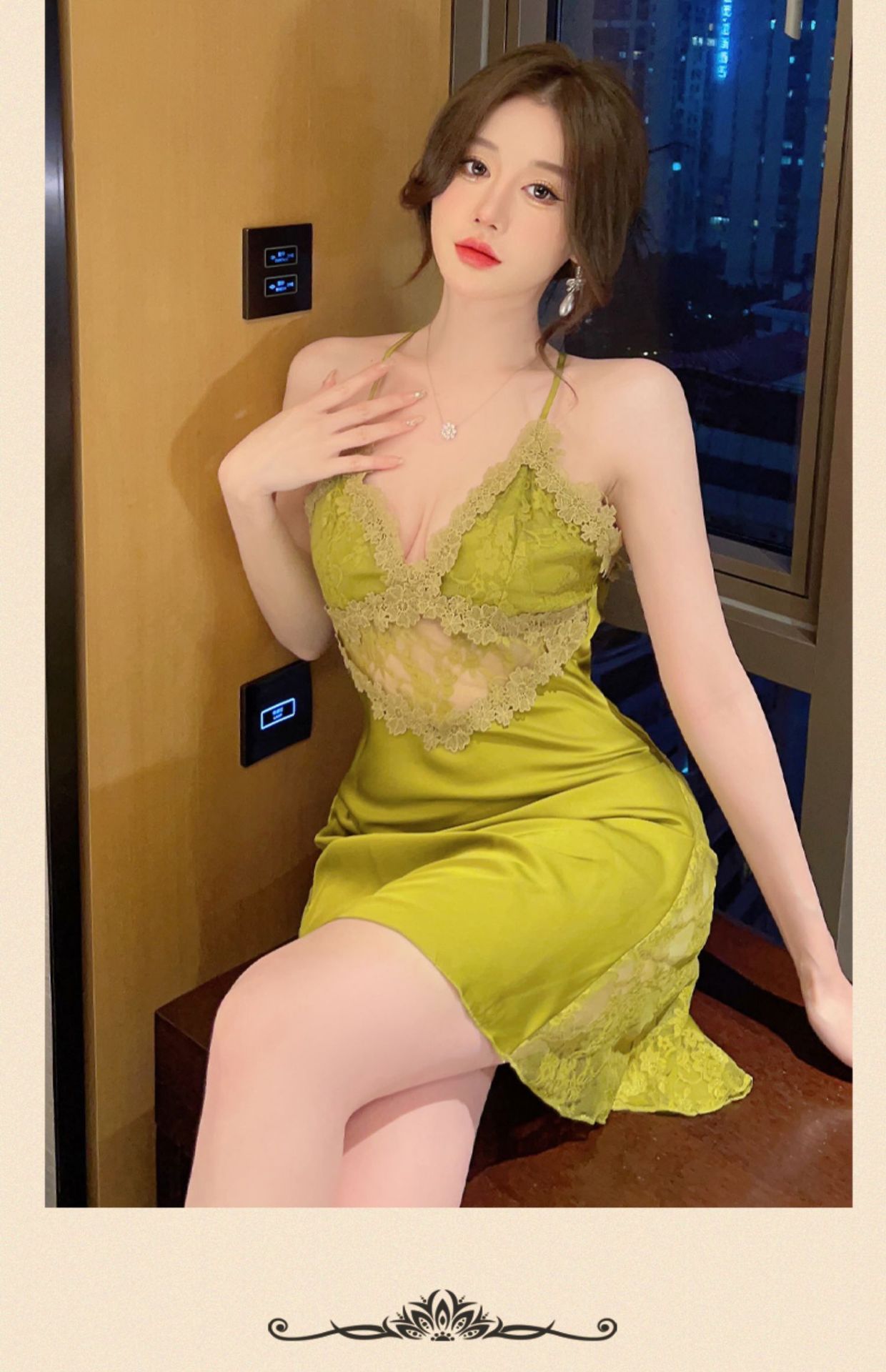 Sexy pajamas women's summer ice silk 2023 new style with chest pad lace suspenders nightdress set nightgown two-piece set
