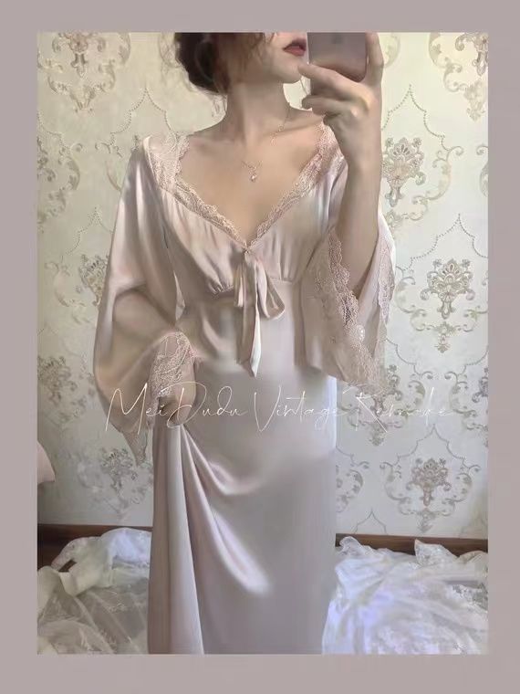 Sexy Sleepwear Night Wear Summer 2022 Home Clothes for Women Ladies Nightgown Lace Long Nightdress Sleepshirt Satin Slip Dress