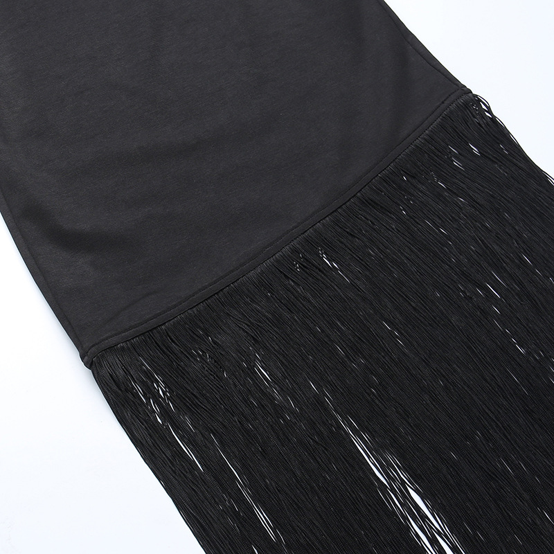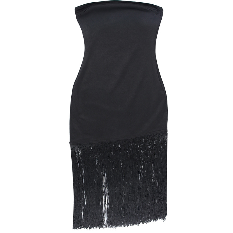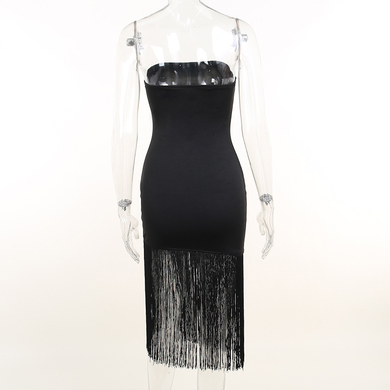 Sexy Tassel Party Dress Women Off Shoulder Sleeveless Strapless Backless Split Bodycon Women Elegant Dress