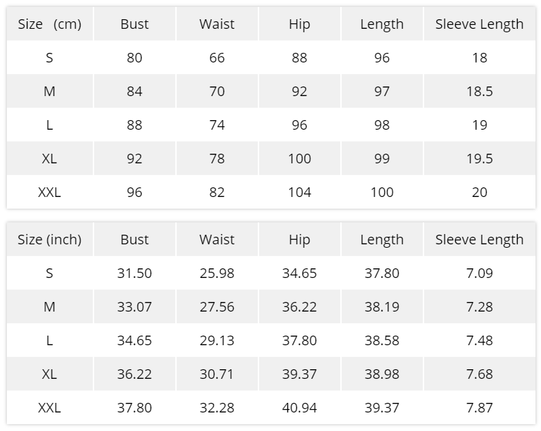 | Product Size | Bust/Chest(cm) | Skirt length(cm) | Waist(cm) |