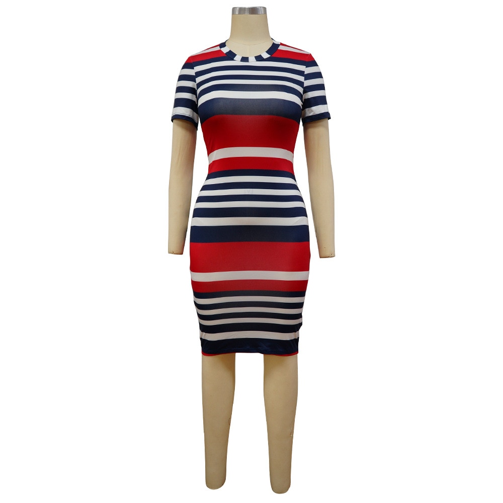 Sexy Women Pack Hip Pencil Dress Bodycon Summer Robe Female Striped Fashion Streetwear Women Elegant Dress
