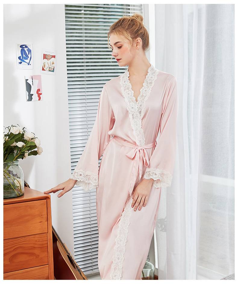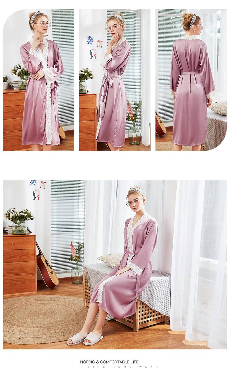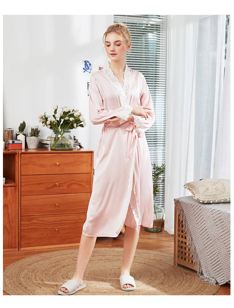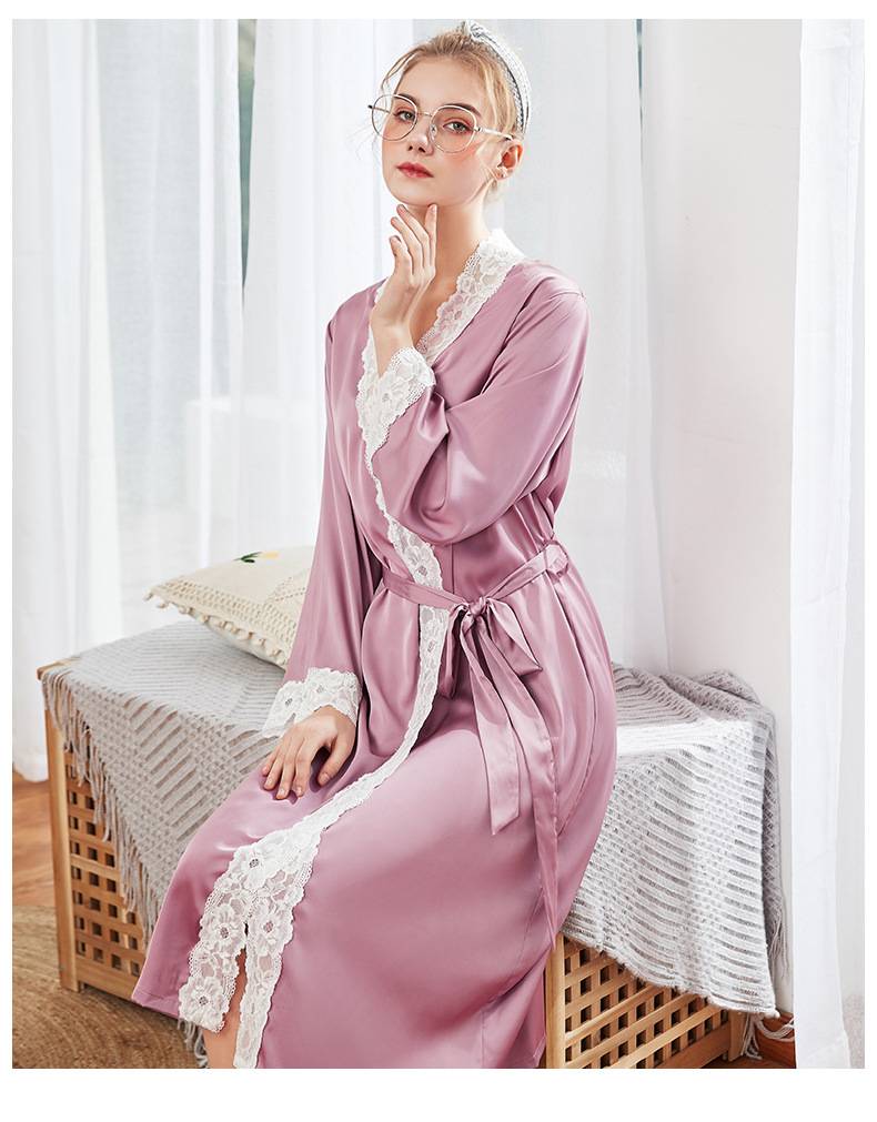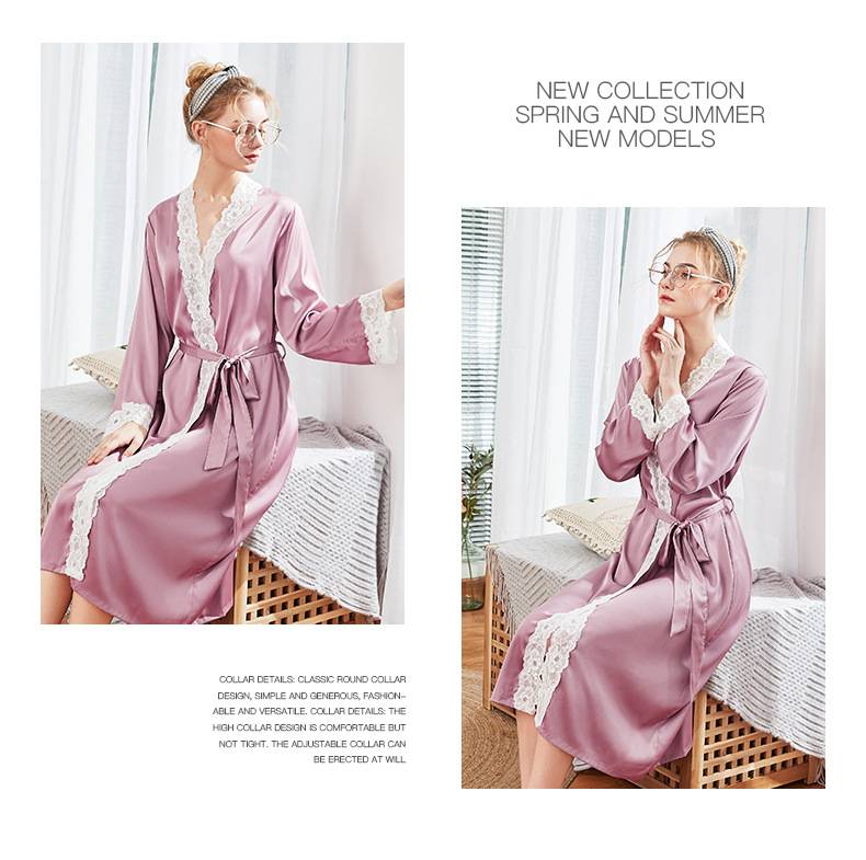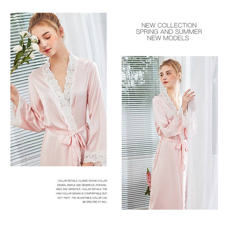 Silk lace Long Robe summer Ladies nightgowns women's thin bathrobe  Ladies Silky Bathrobe Women indoor nighty