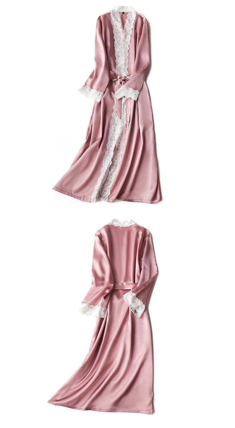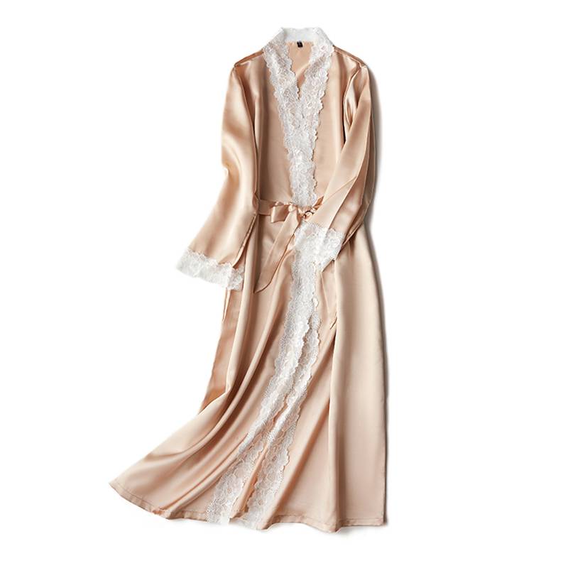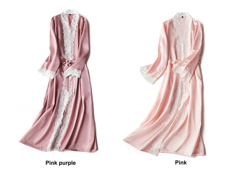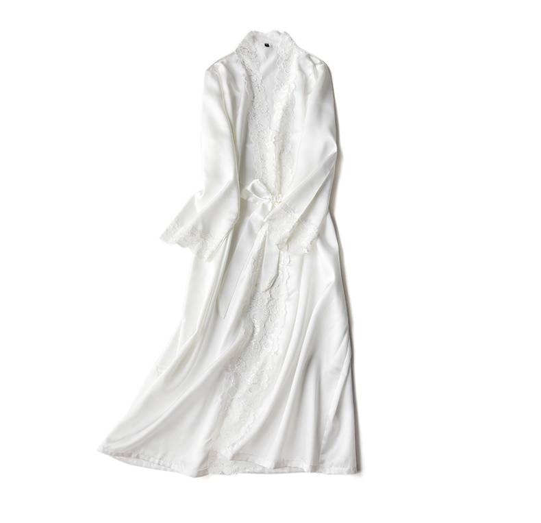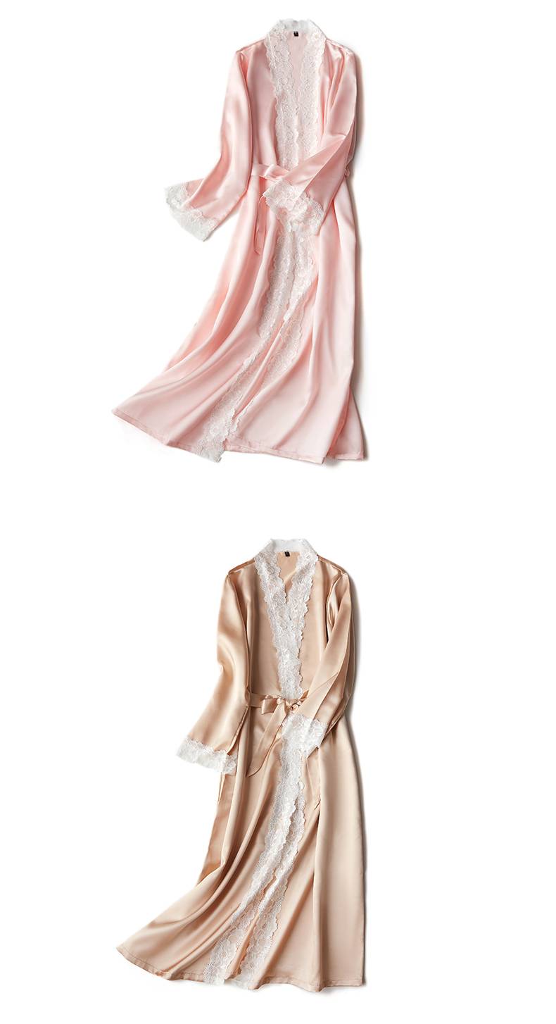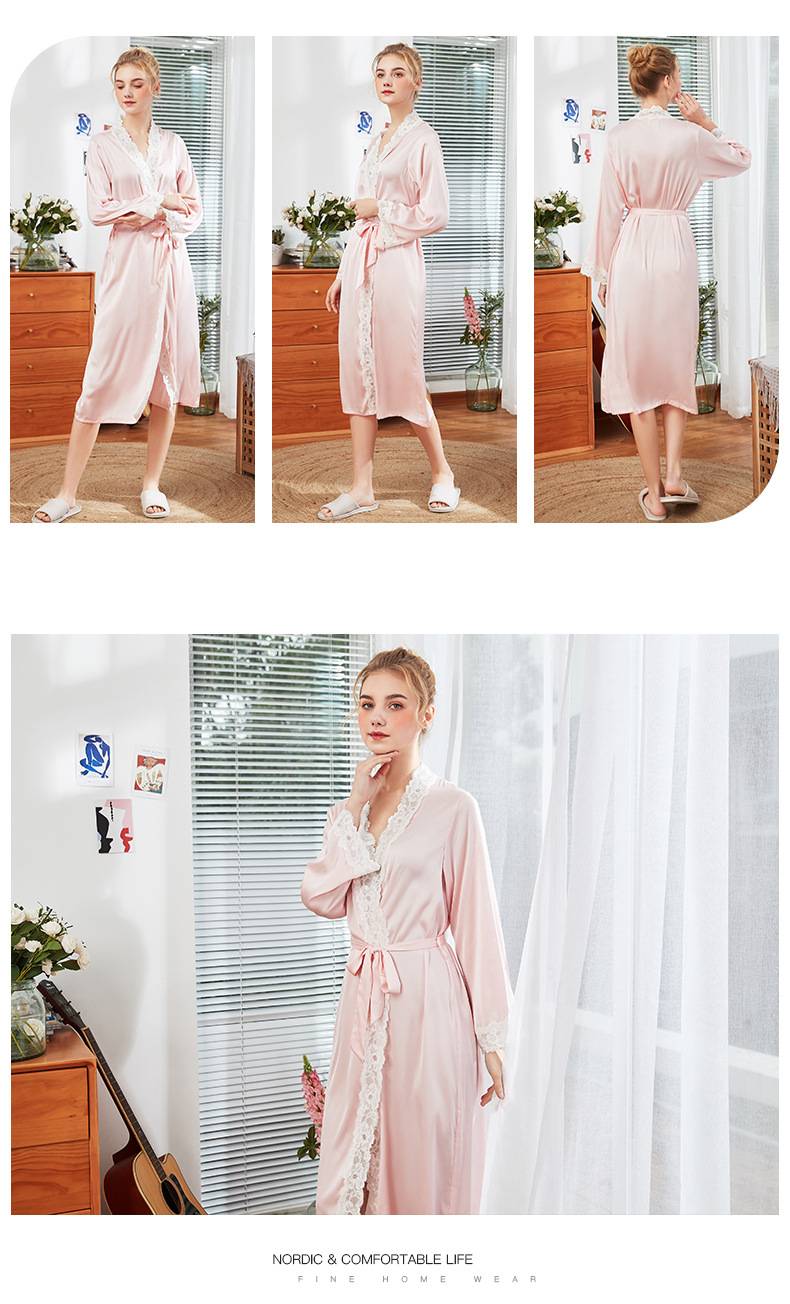 Silk lace Long Robe summer Ladies nightgowns women's thin bathrobe  Ladies Silky Bathrobe Women indoor nighty