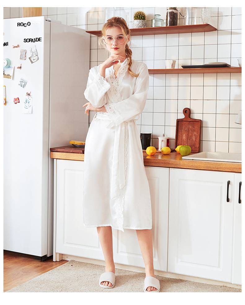 Silk lace Long Robe summer Ladies nightgowns women's thin bathrobe Ladies Silky Bathrobe Women indoor nighty