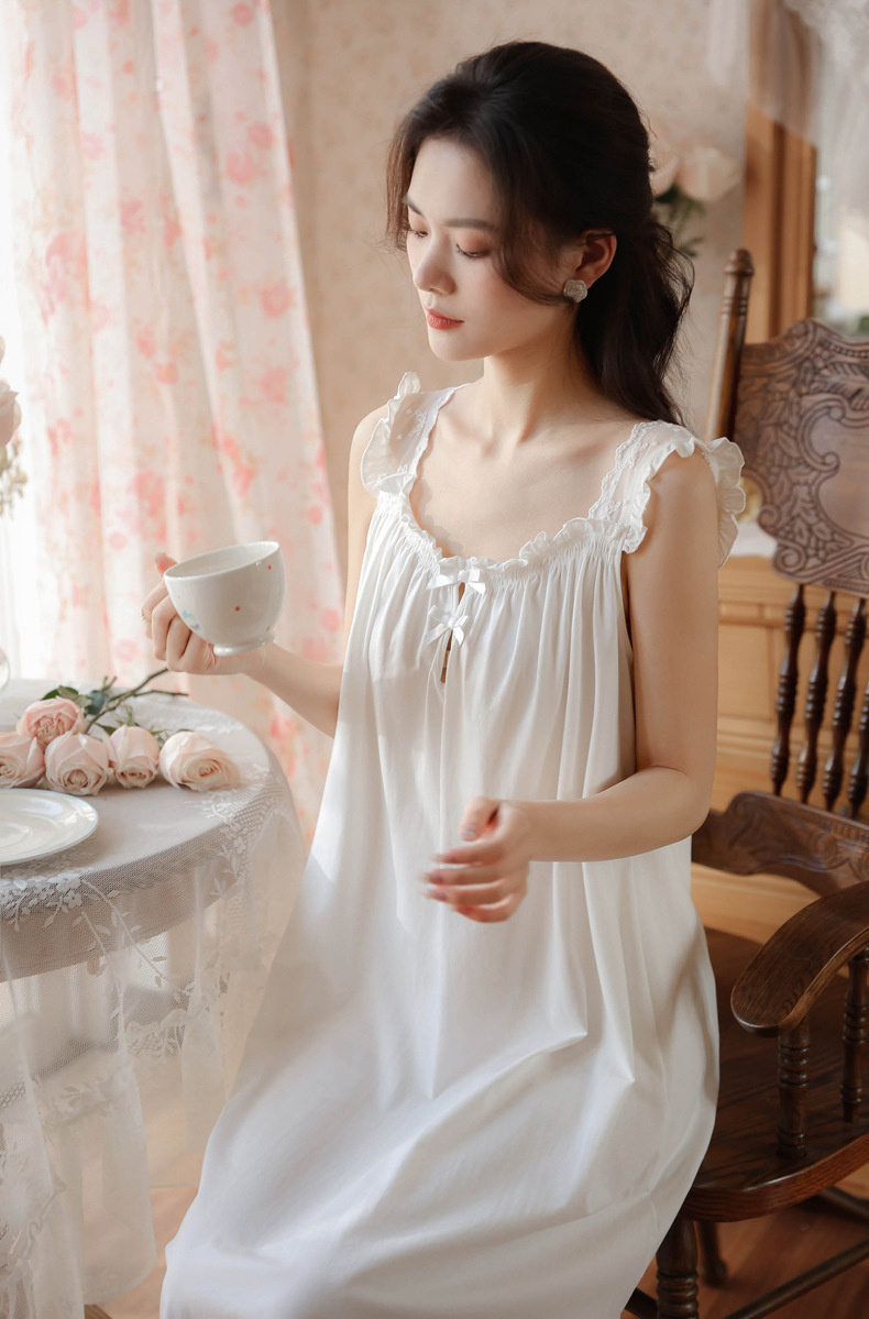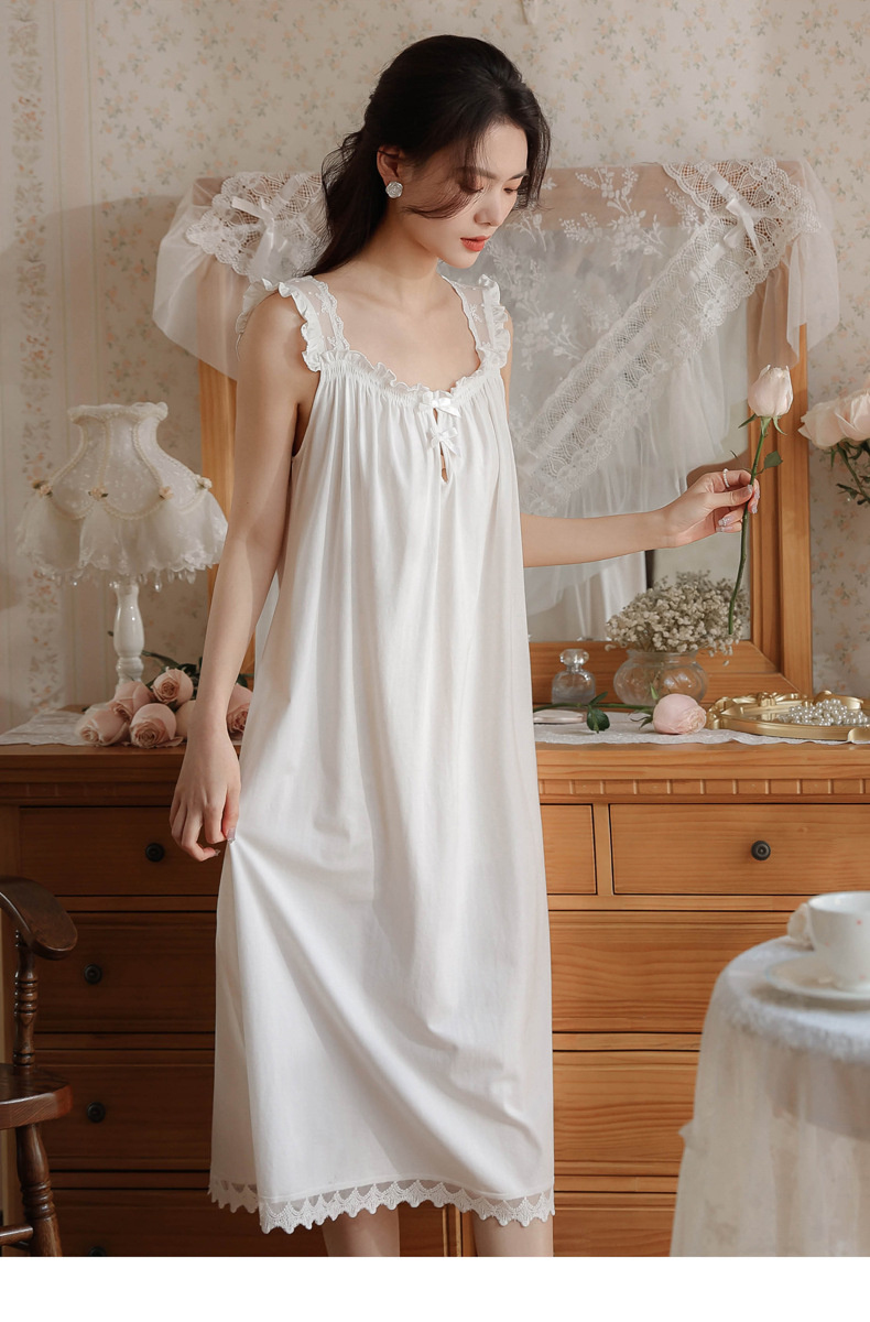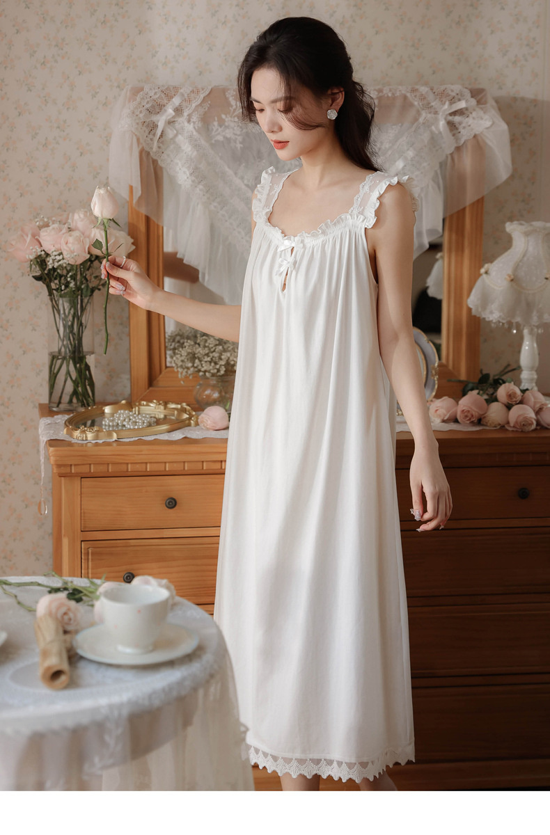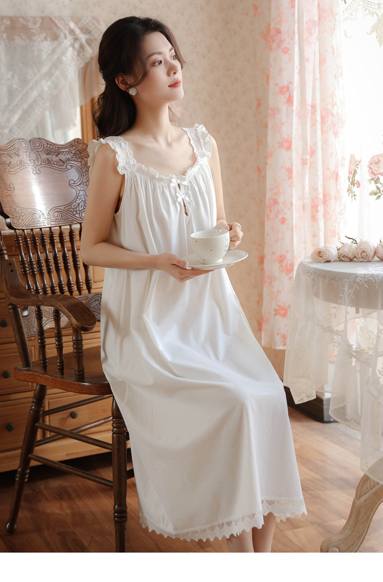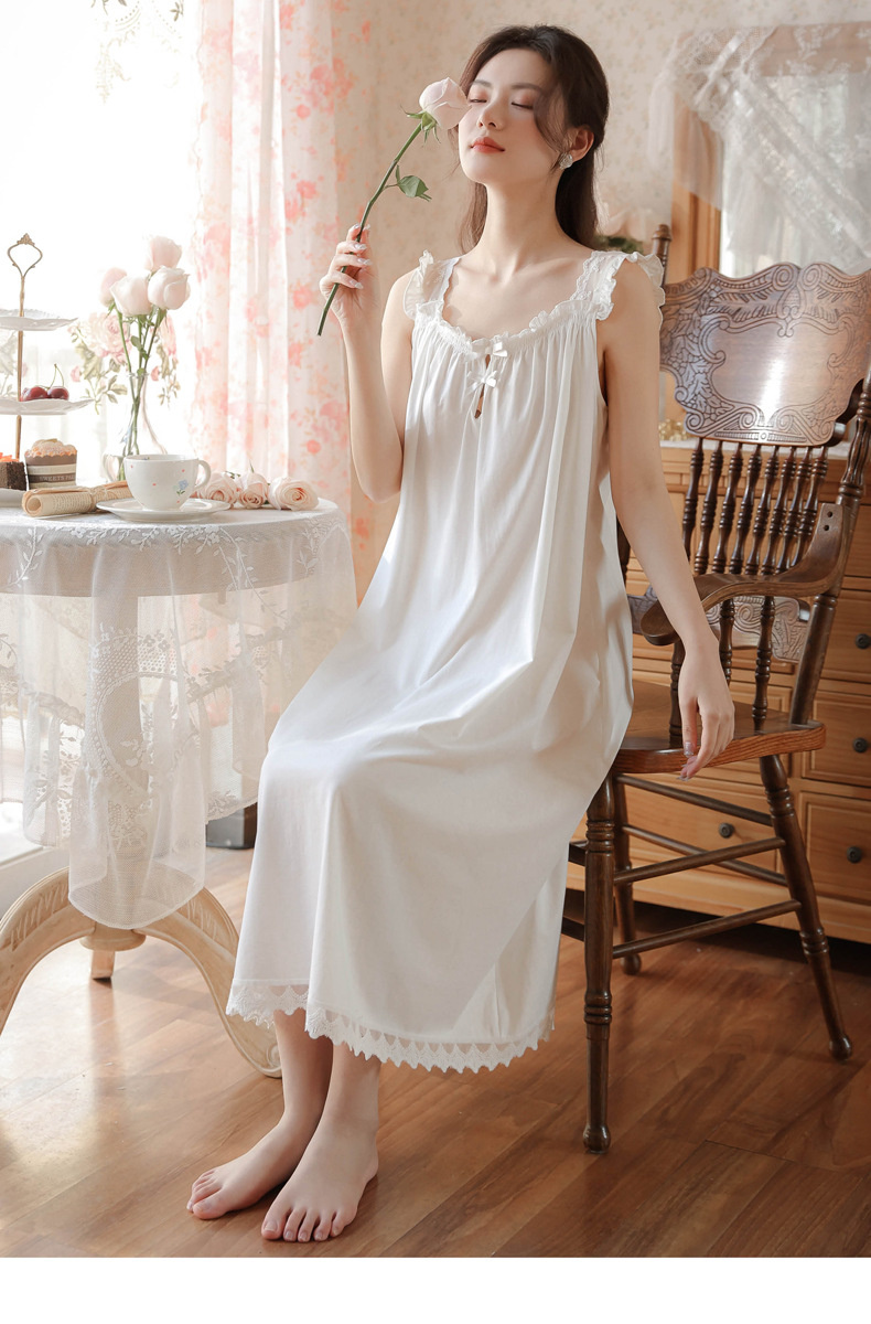 Sling Pajama Cotton New Girl Summer Loose Thin Court French Sweet Long Dress Pajamas Home Wear