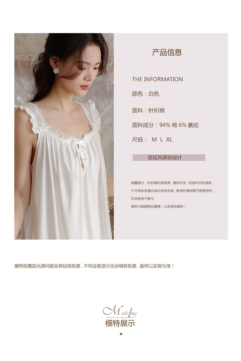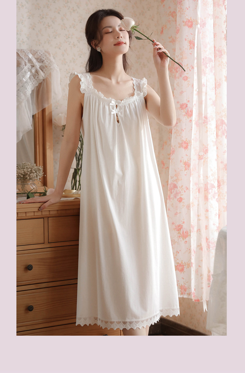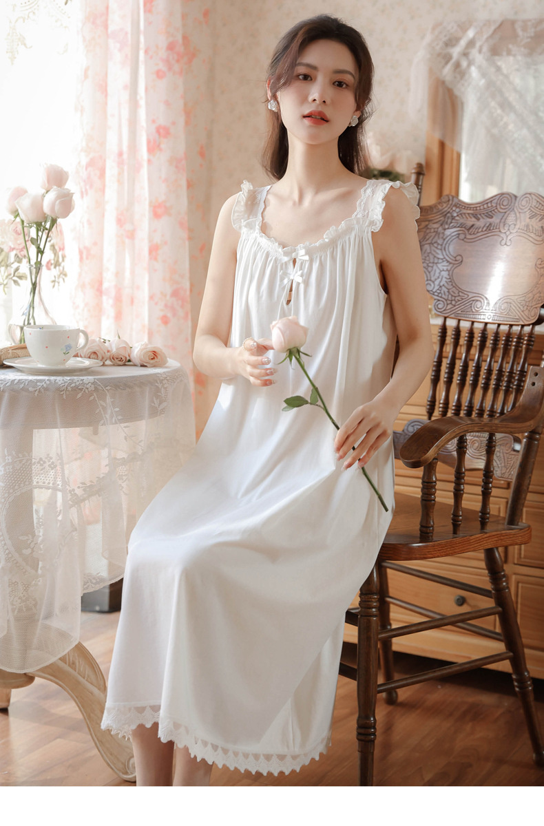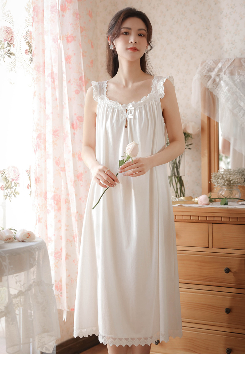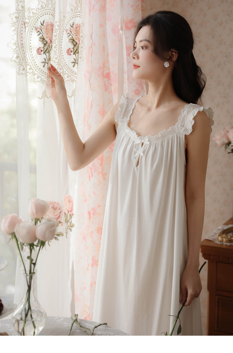 Sling Pajama Cotton New Girl Summer Loose Thin Court French Sweet Long Dress Pajamas Home Wear