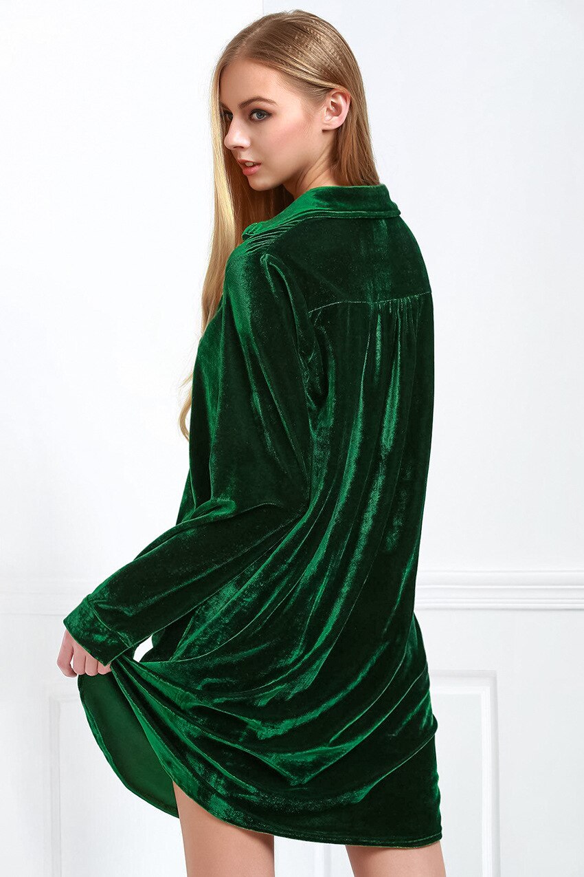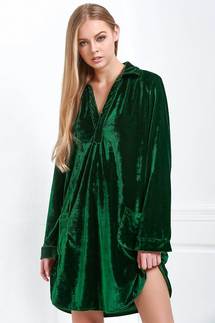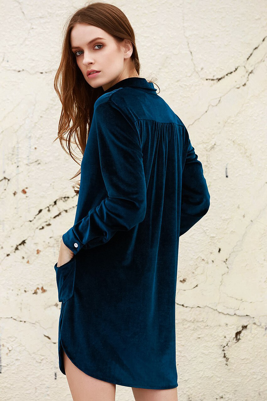 Solid Velvet Nightgown Women Sleepwear Long Sleeve Double Pockets Woman Dress Slit Loose Knitted V-Neck Night Dresses Winter