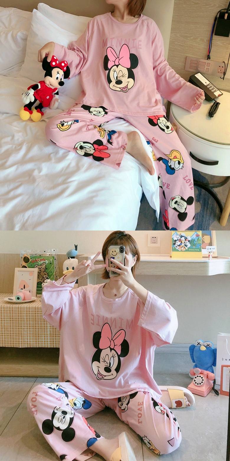 Spring and Autumn pajama sets Mickey  robes kawaii clothes casual nightgowns  pajamas for teen girls