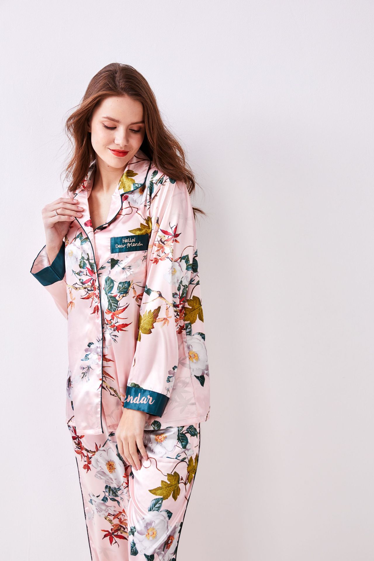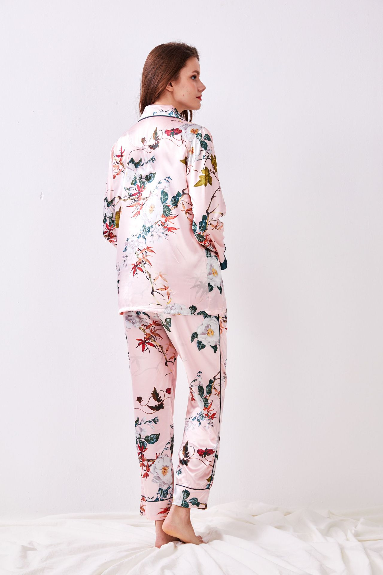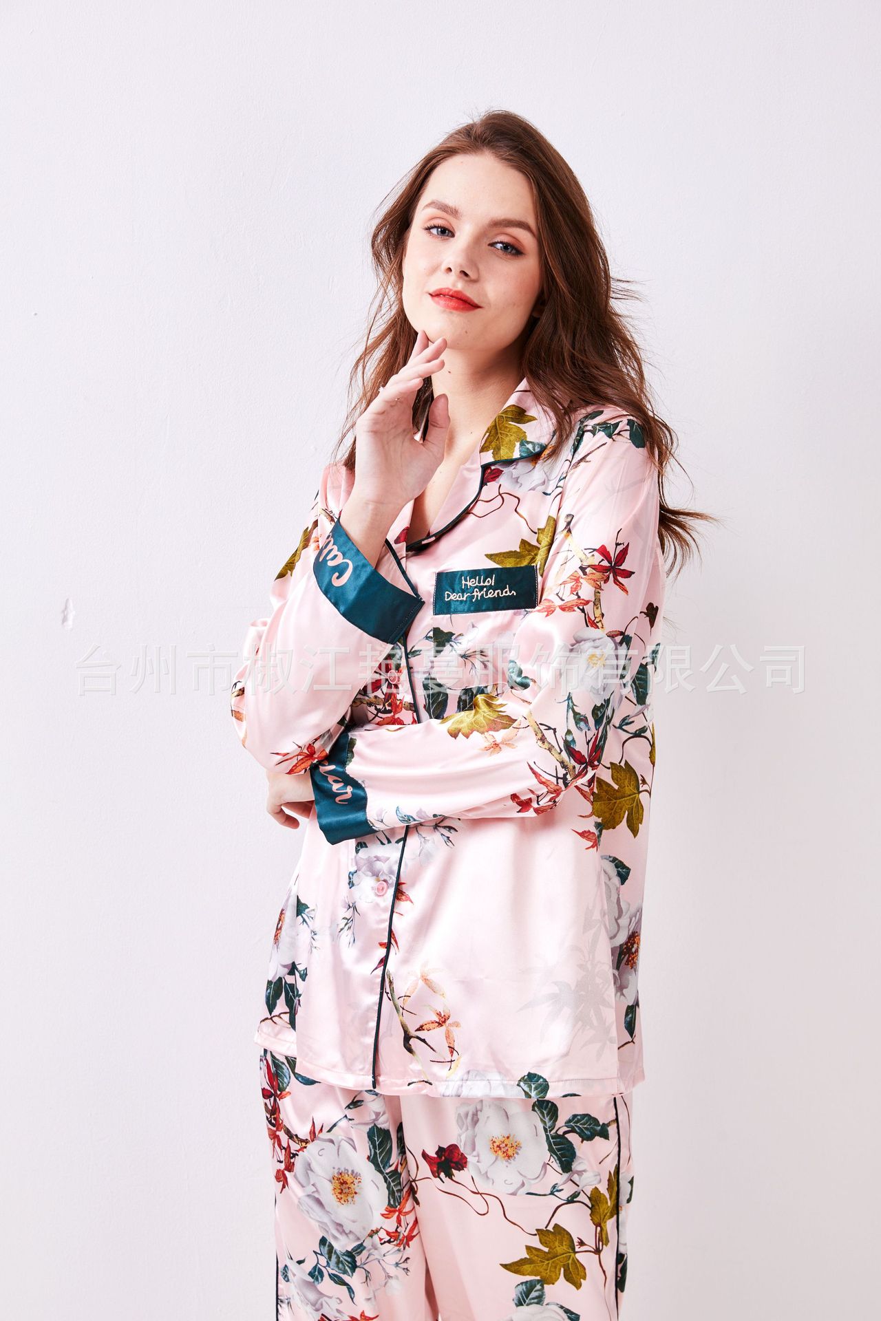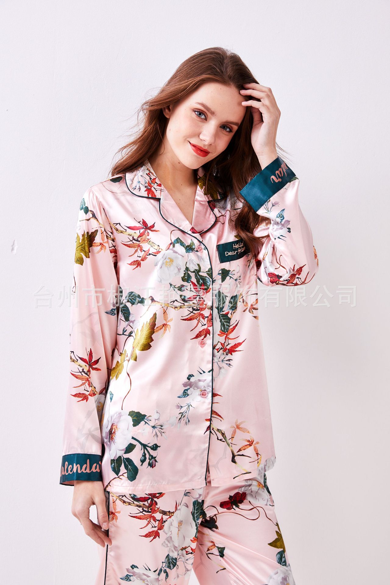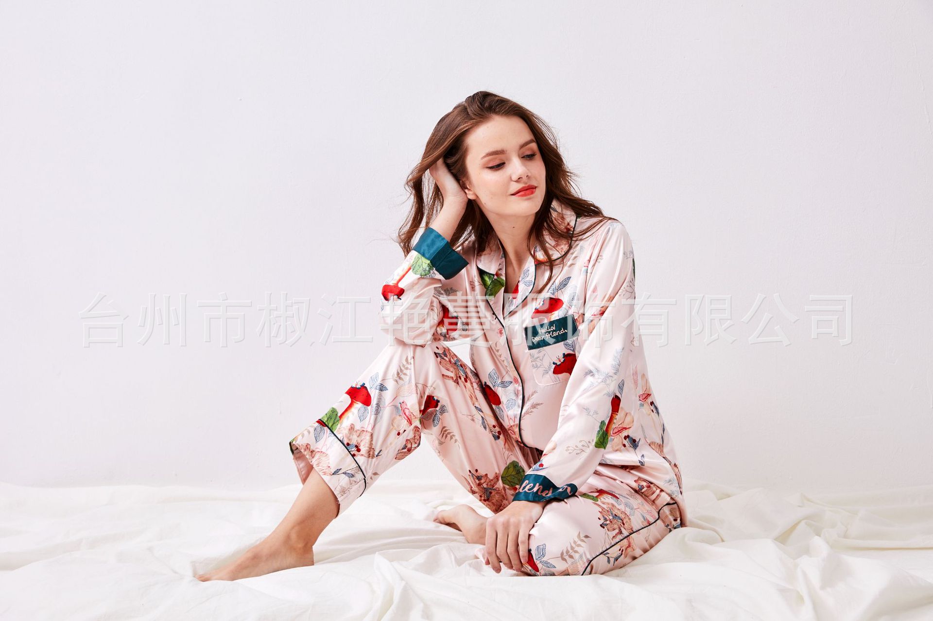 Spring and Autumn Silk Long Sleeve Pajamas Women Korean Casual Simulated Silk Pajamas Two-piece Set Thin Homewear Set