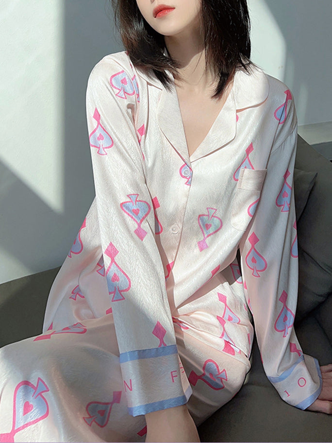 Spring and summer women's popular fashion cardigan sweet ice silk long-sleeved home clothes two-piece suit