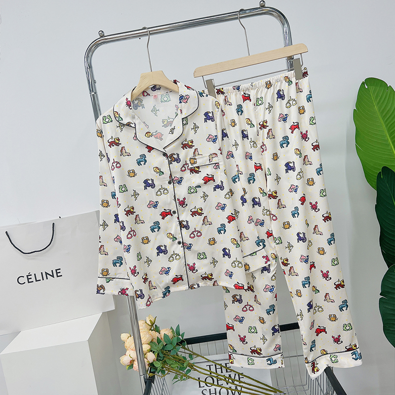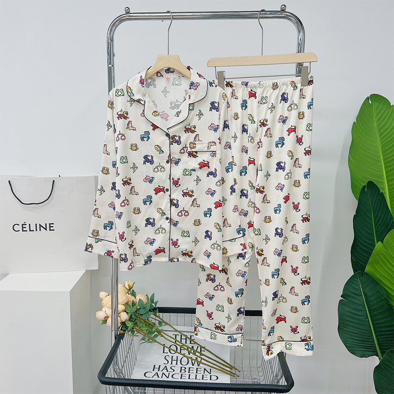 Spring and summer women's popular fashion cardigan sweet ice silk long-sleeved home clothes two-piece suit