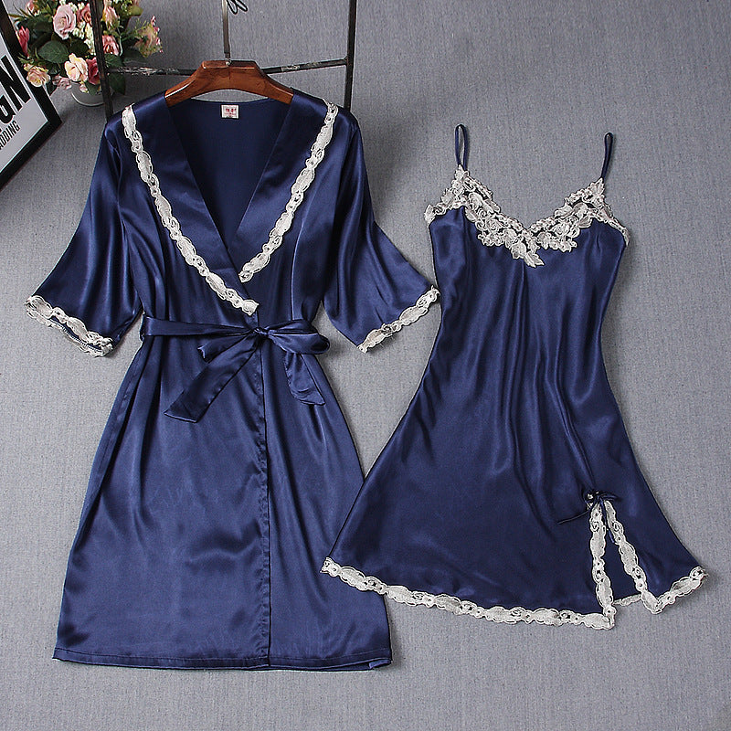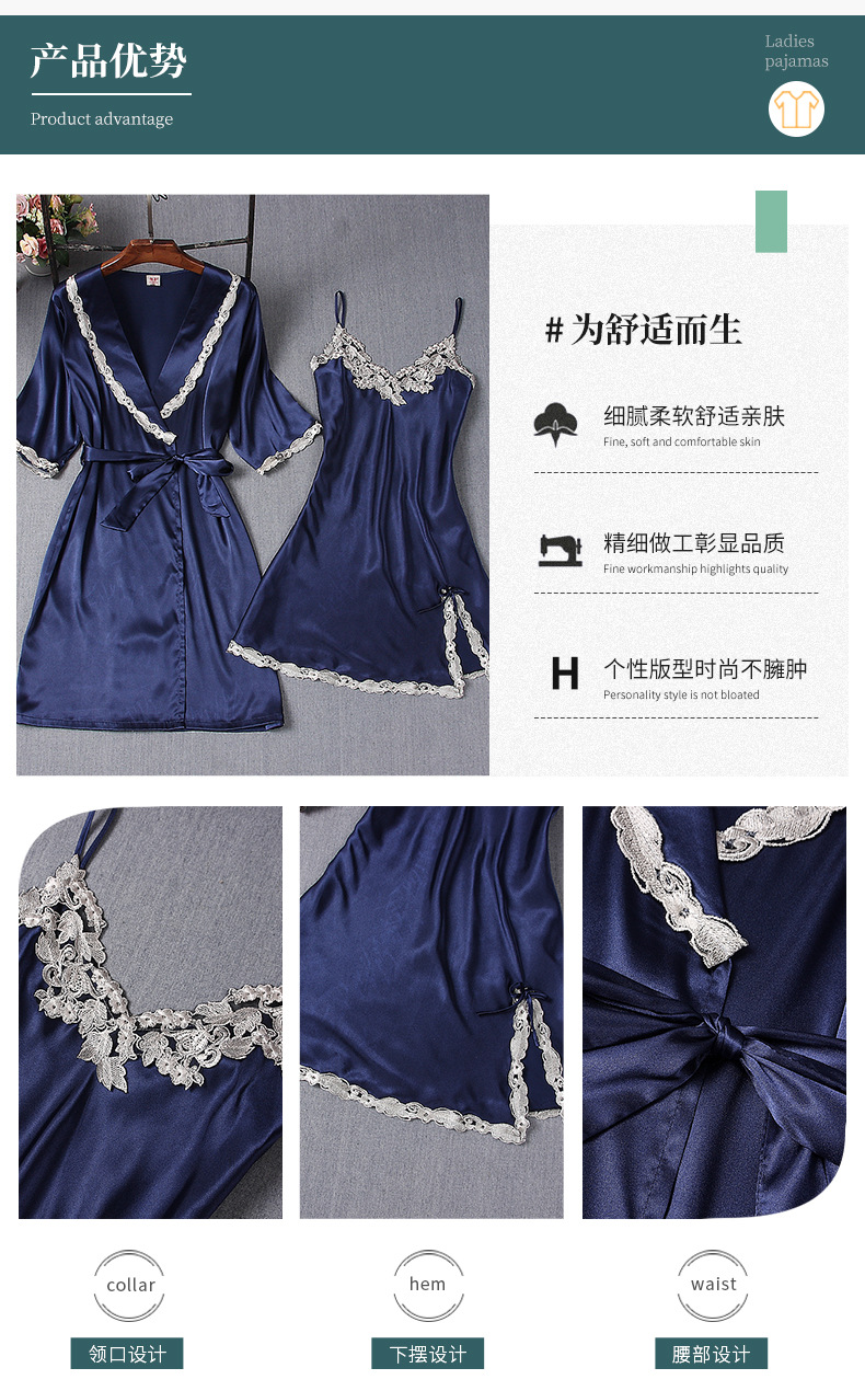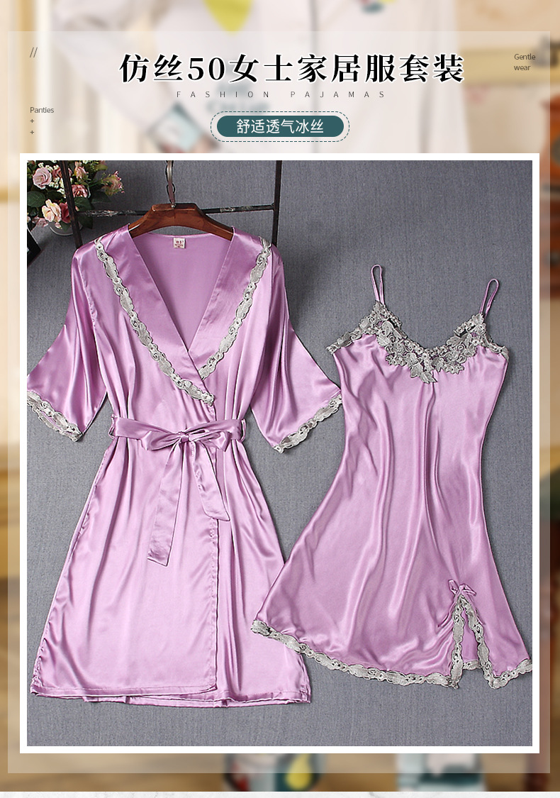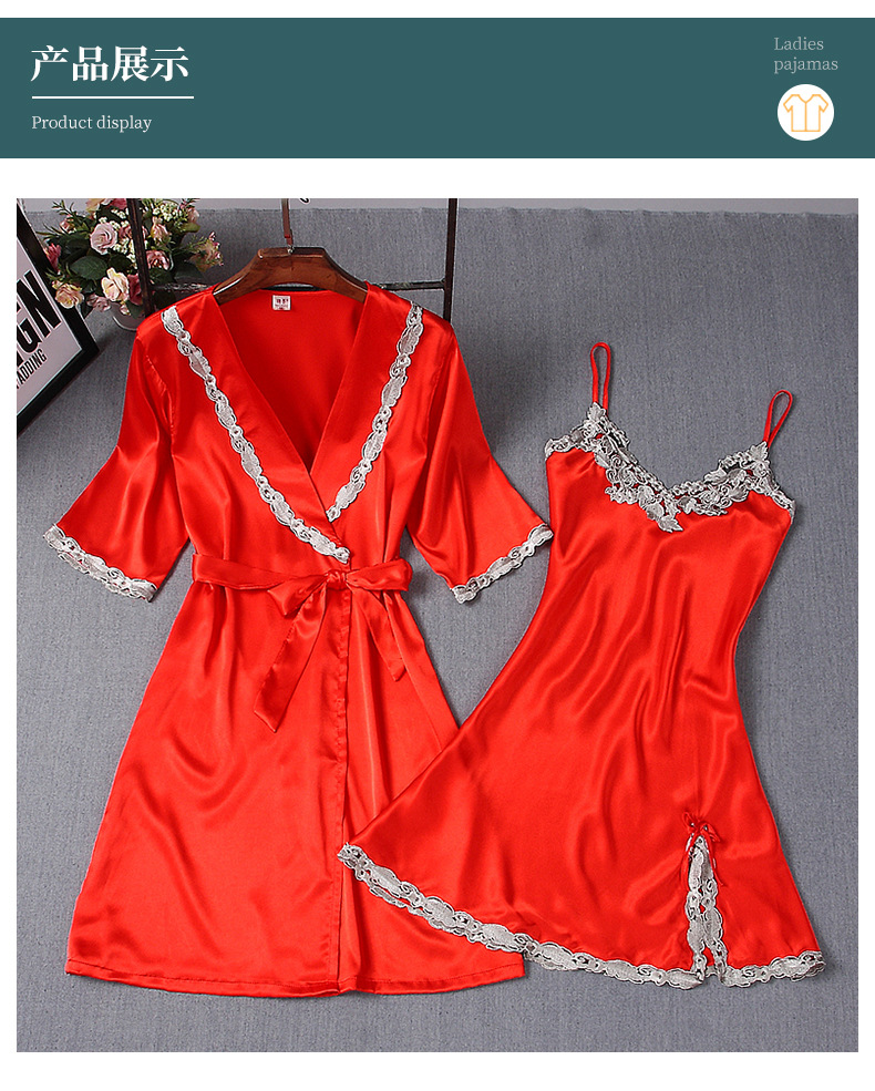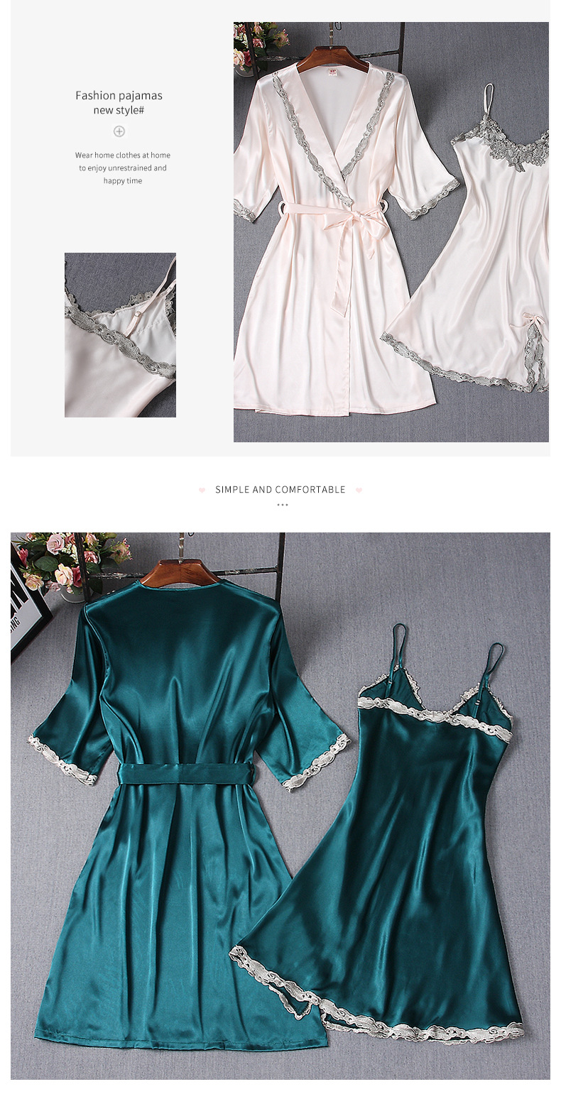 Spring Summer Ice Silk Pajamas Ladies Two-piece Sling Nightdress Comfortable Breathable Women's Nightgown Set