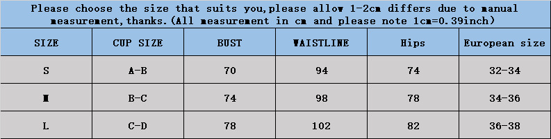 | Product Size | Bust/Chest(cm) | Waist(cm) |