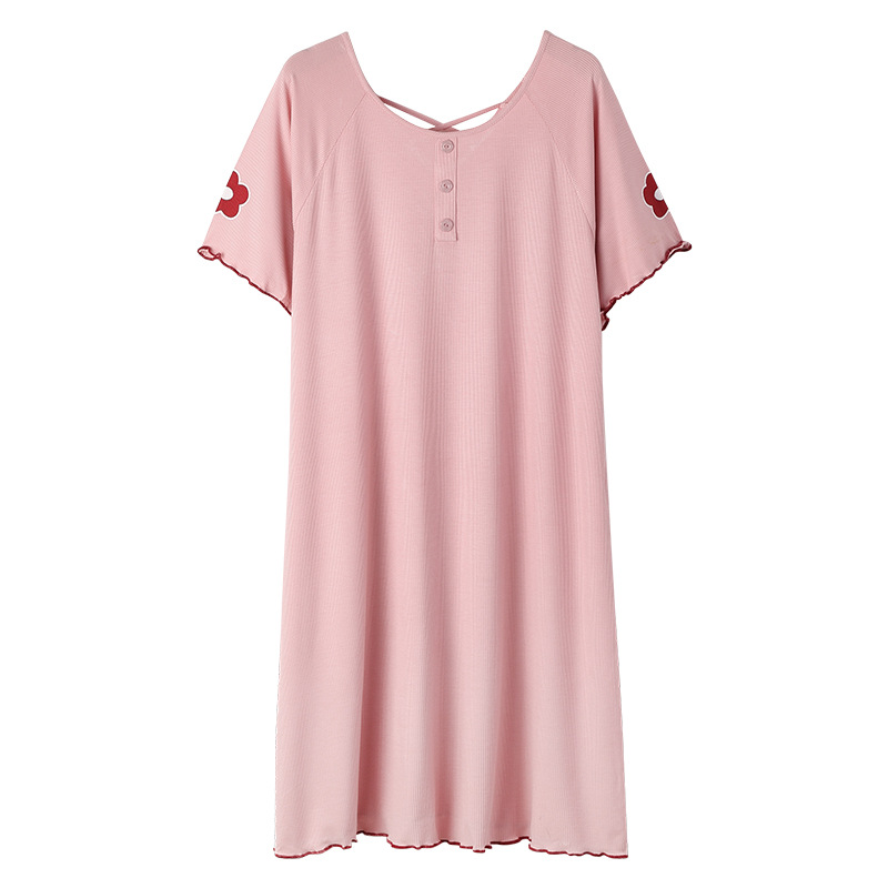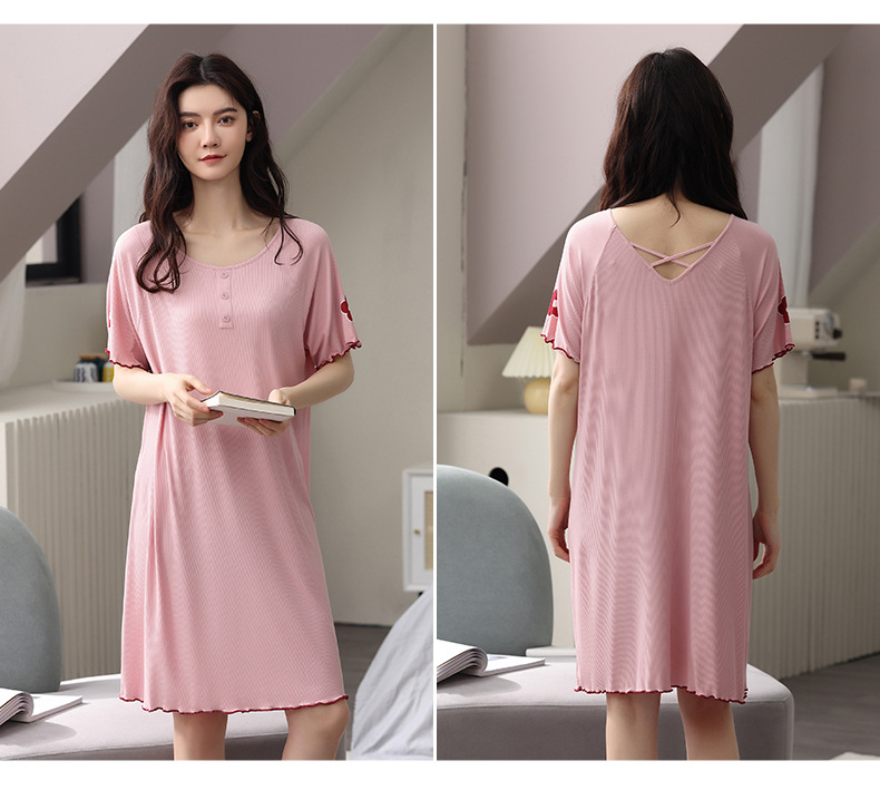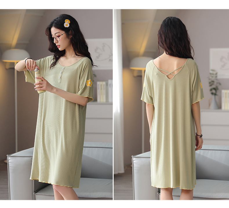 Summer loose nightdress women's round neck short-sleeved cute home service women's cotton thin mid-length skirt beautiful back ladies pajamas dress
