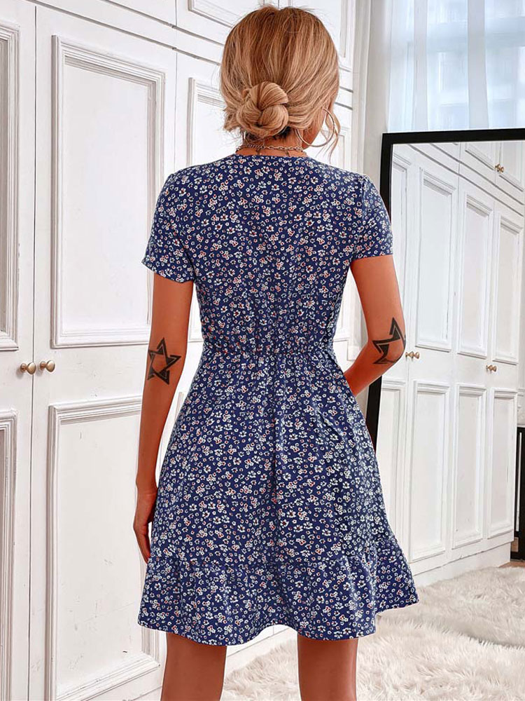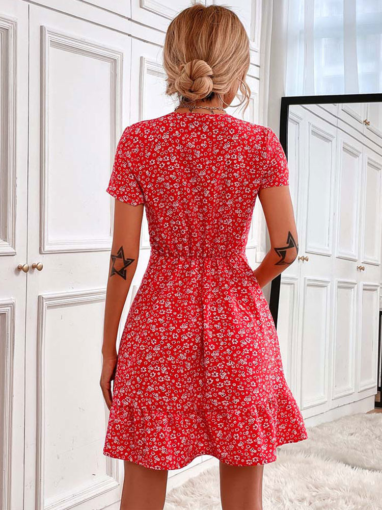 Summer Short Boho Dress Women V Neck Printed Flower Party Dress Women Boho Flower Miniskirt