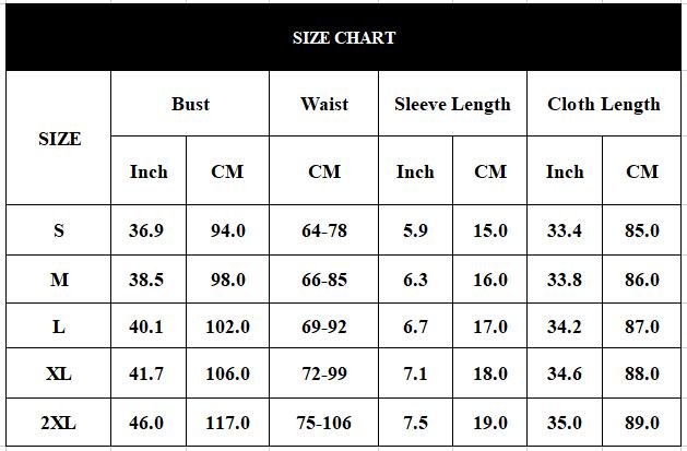 | Product Size | Bust/Chest(cm) | Skirt length(cm) |