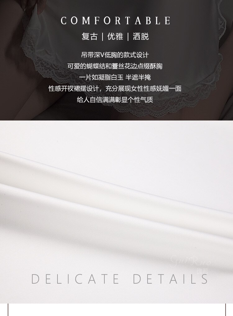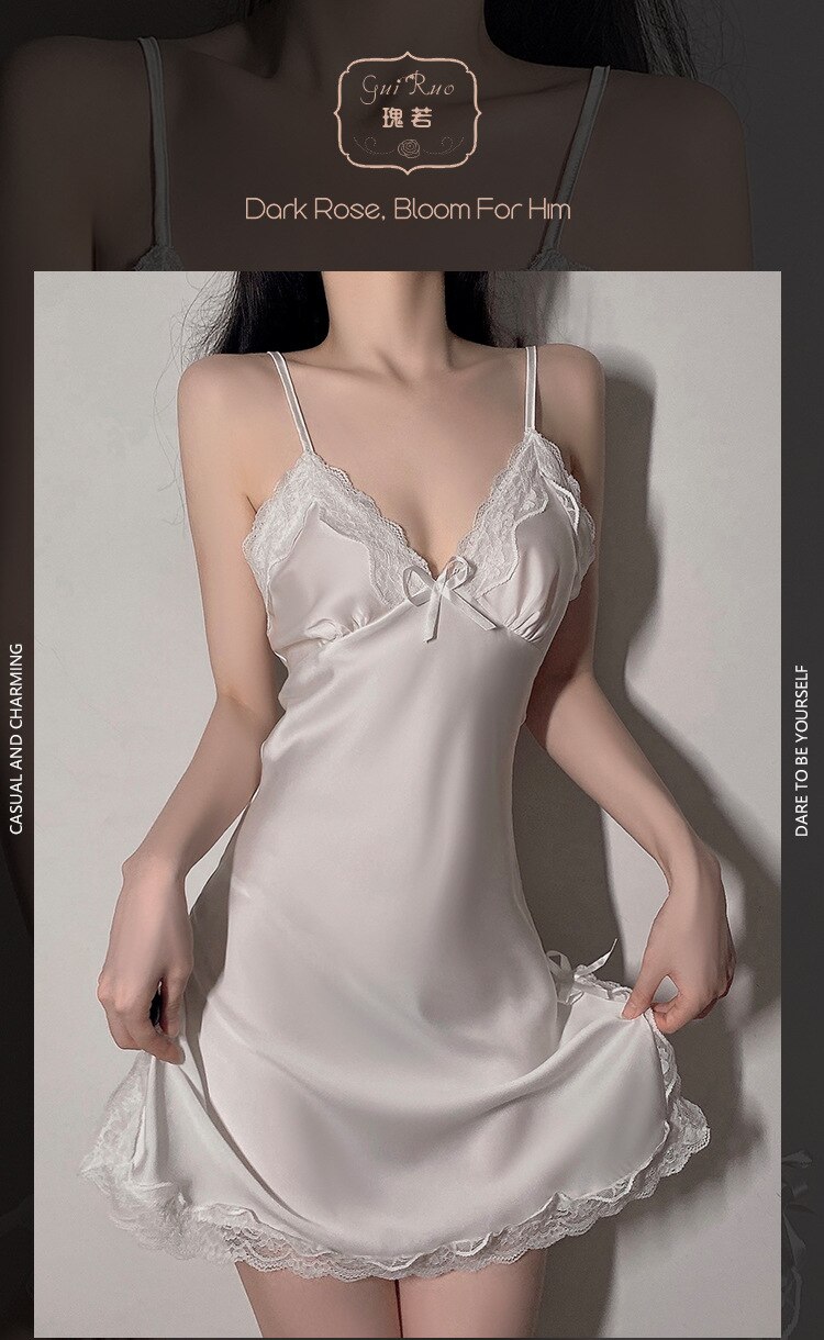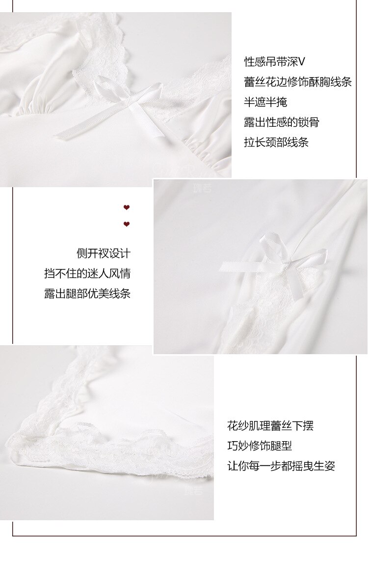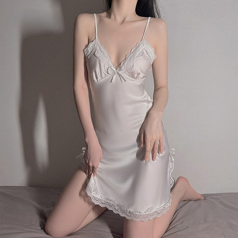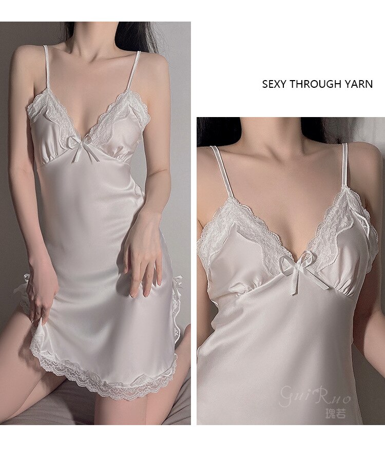 Summer Women's Sexy Lingerie Nightdress Satin Lace Thin Slip Nightgowns Deep V Slit Nighty For Ladies Sleepwear Girls Sleepshirt