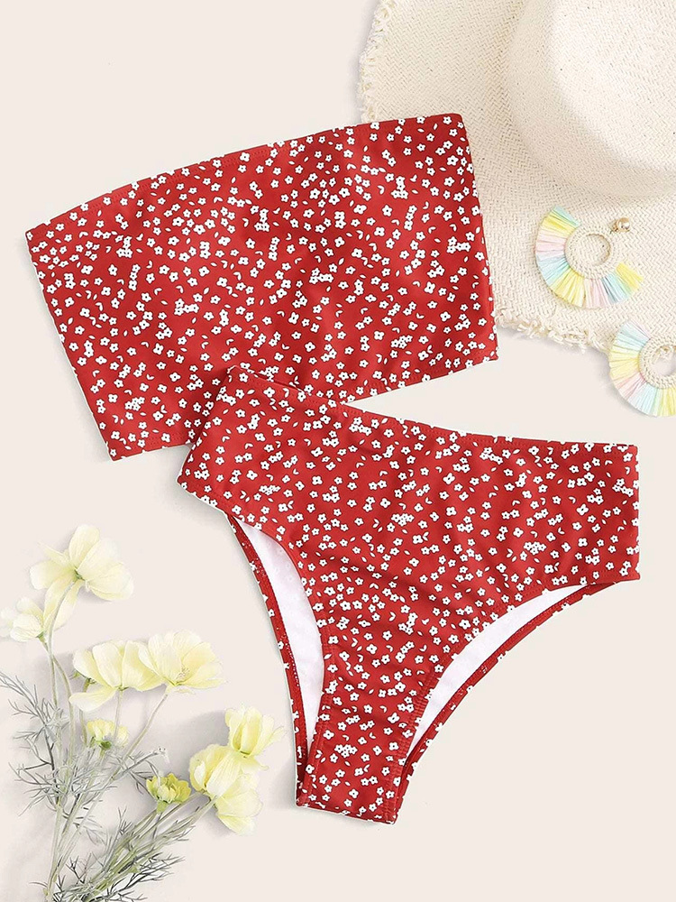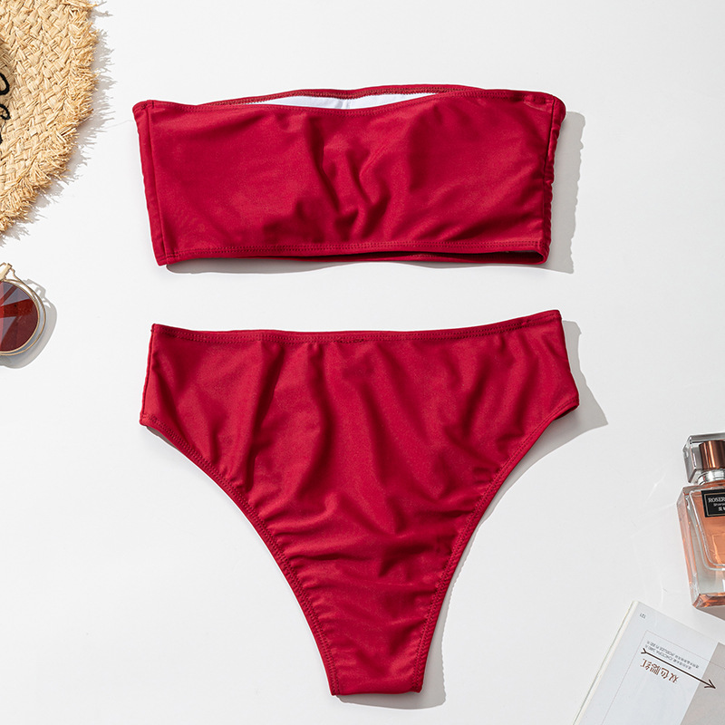 European and American tube top high waist split bikini