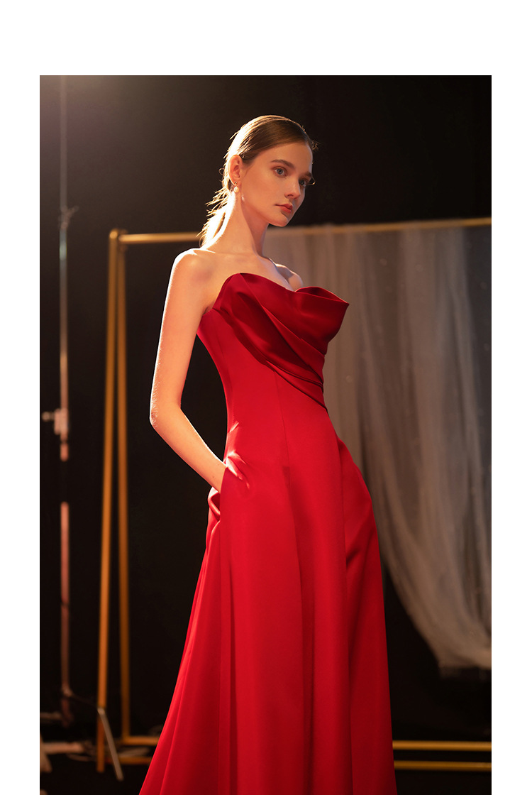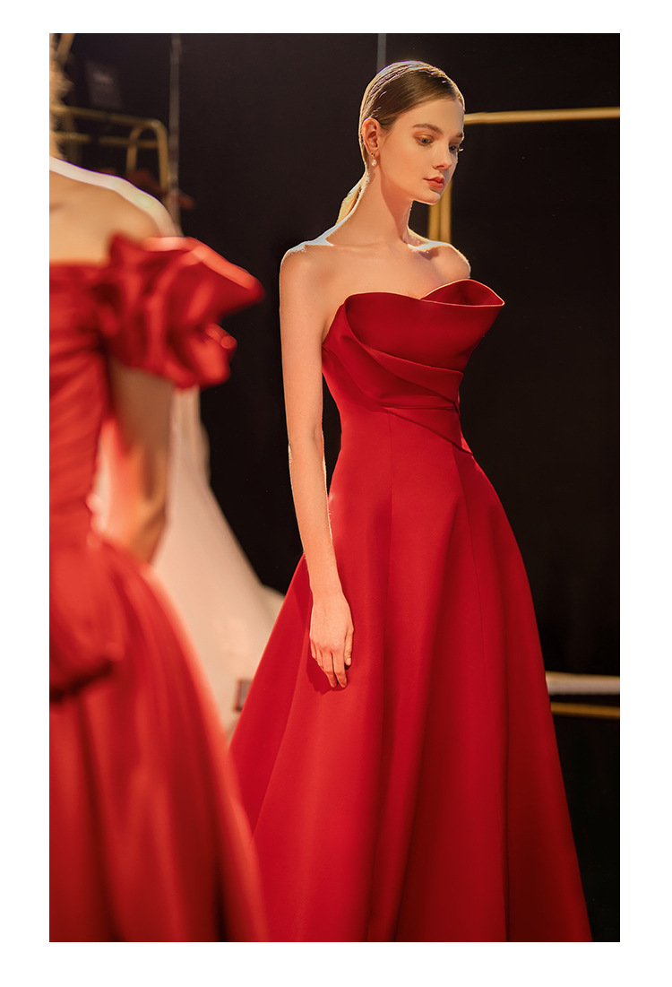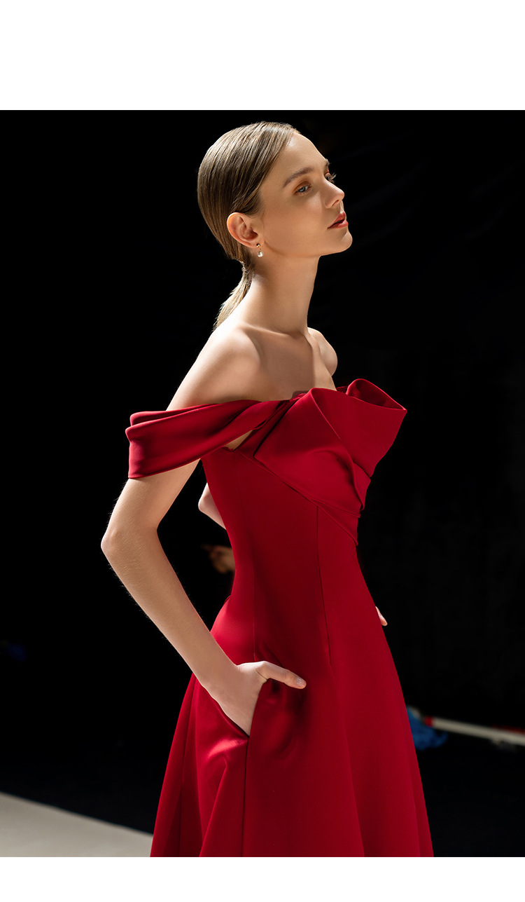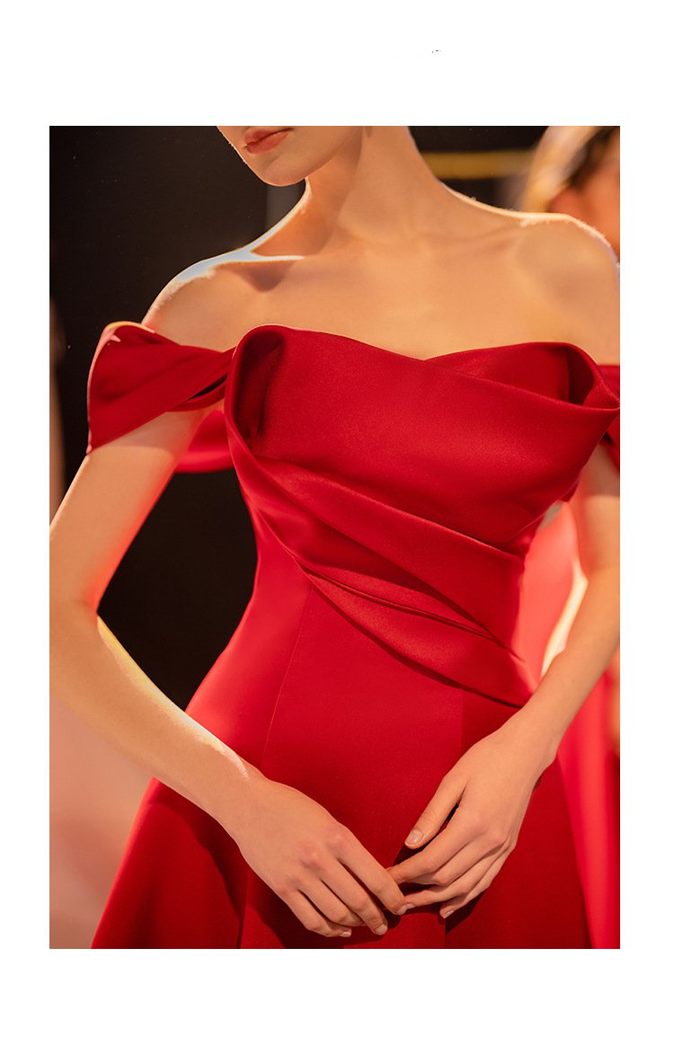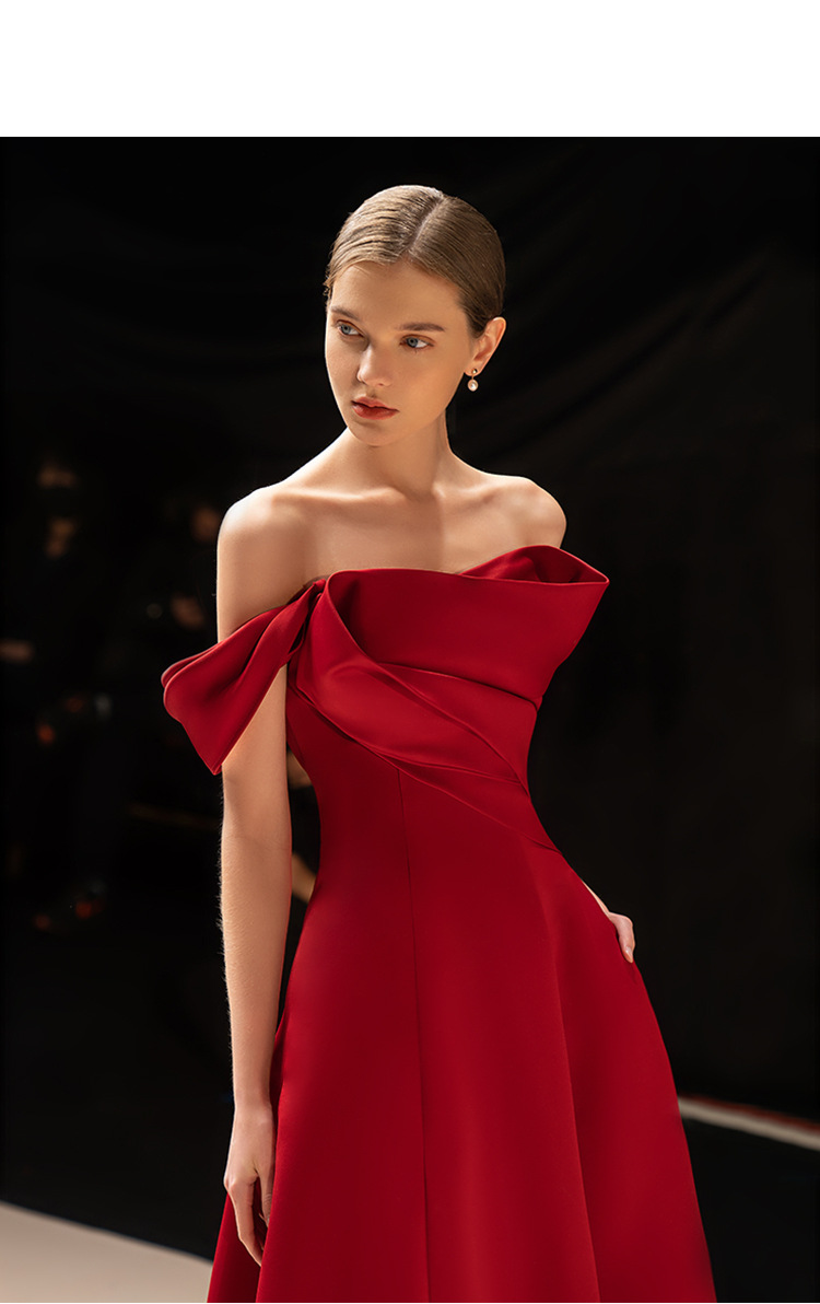 Toast clothing 2022 autumn and winter new bride slim sexy satin one-shoulder engagement evening dress women