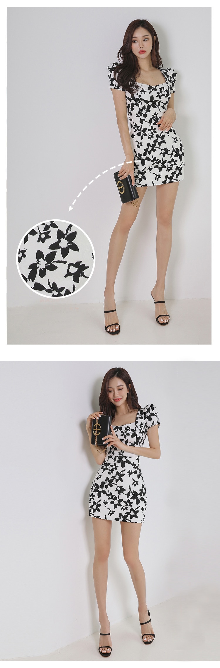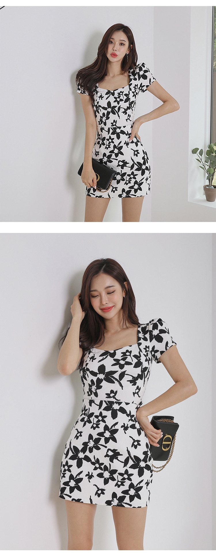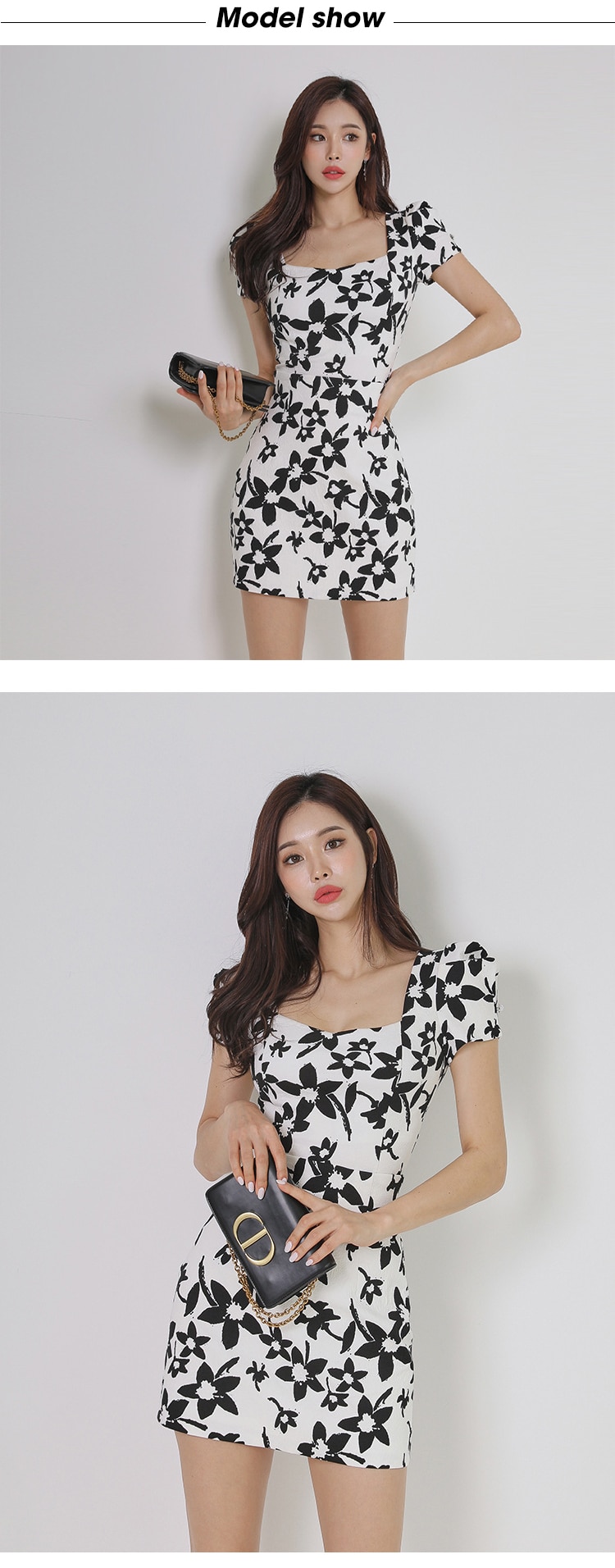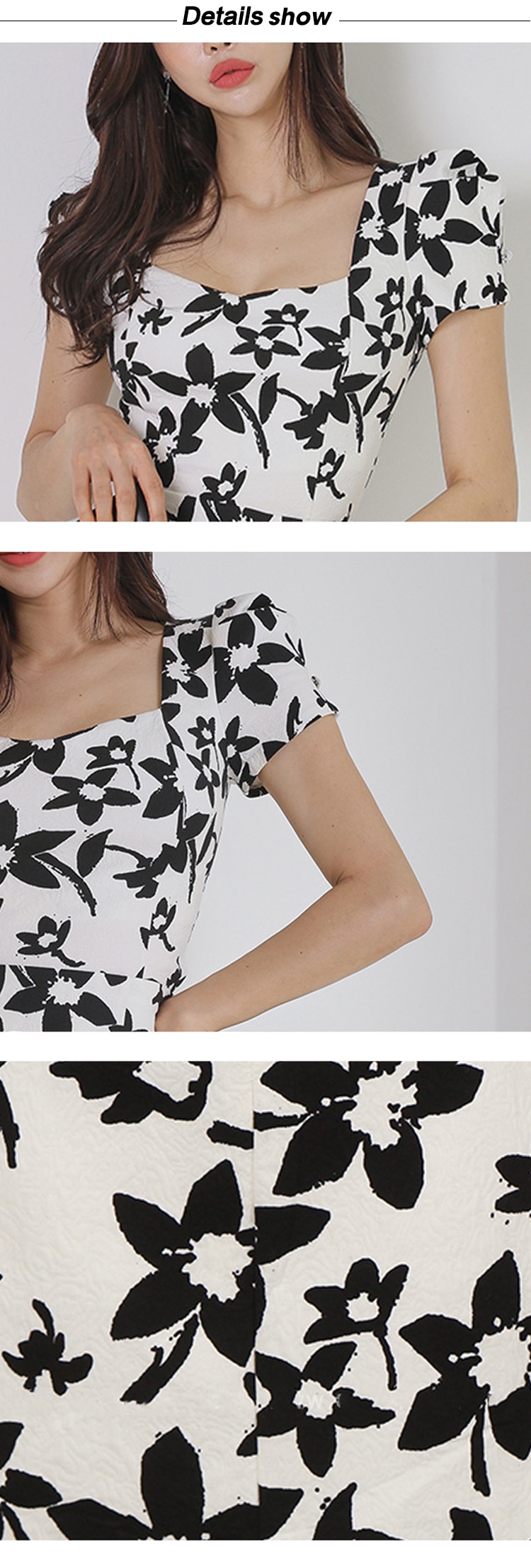 Vintage Short Sleeve Print Tops Women Bodycon Package Hips High Waist Mini Skirt Casual Square Collar Shirt Blouse 2 Pieces Set