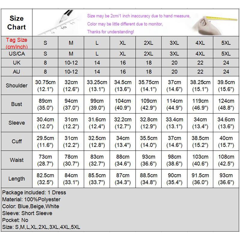 Your opinion is very important to us. If you have a questions after receiving the goods, plse contact us fit, and we will give you a satisctory answer.—— Package included: 1 DressMaterial: 100%Polyester Color: Blue,Beige,WhiteSleeve: Short SleevePocket: NoSize: S,M,L,XL,2XL,3XL,4XL,5XLPattern: SolidLength: Thigh-LengthFeatures: Pleating,Puff Sleeve,V-NeckedStyle: Leisure,Holiday,Daily,FashionSeason:...