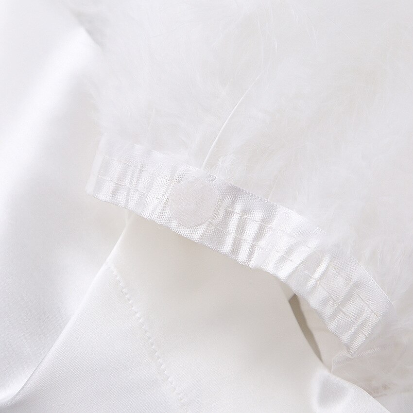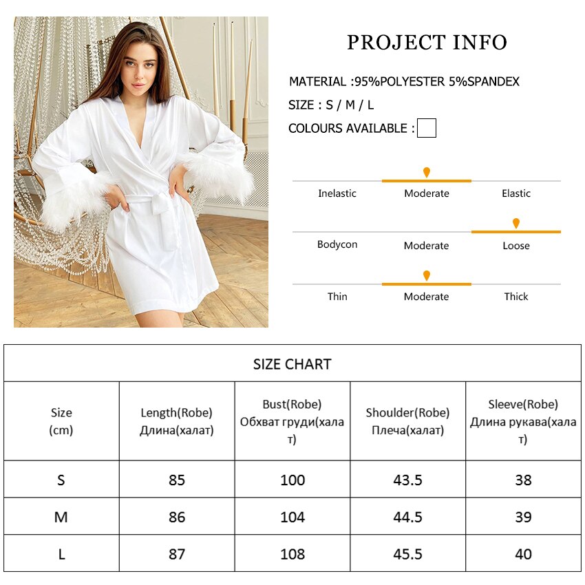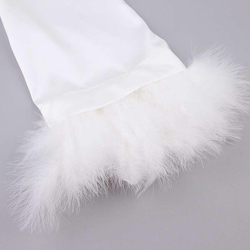 Wedding Bride Robe Gown Dressing Bathrobe White Feather Robe With Fur Full Sleeves Sleepwear Satin Robes For Women Nightgown