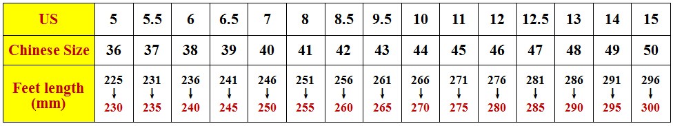 For example, If your foot length is 255 mm , you should choose the size 8.