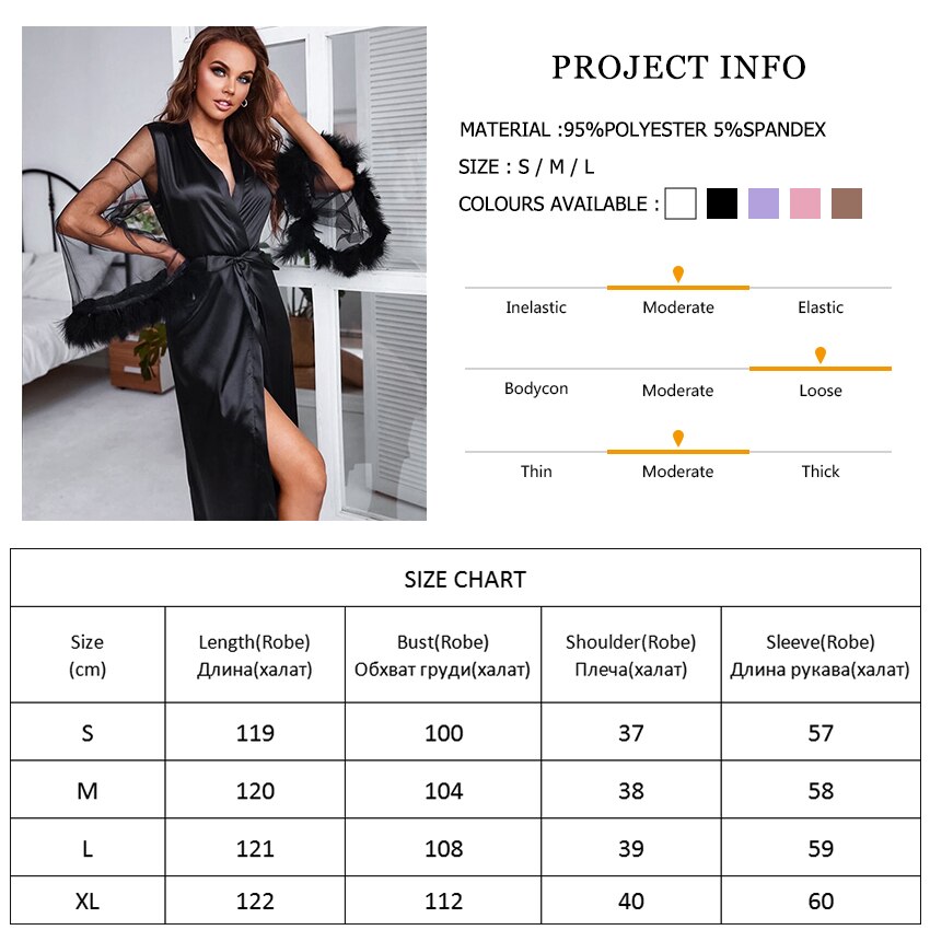 Women's Bride Dressing Gown 2022 See Through Satin Pajamas With Feathers Robes Patchwork Sexy Robe Long Flare Sleeves Sleepwear
