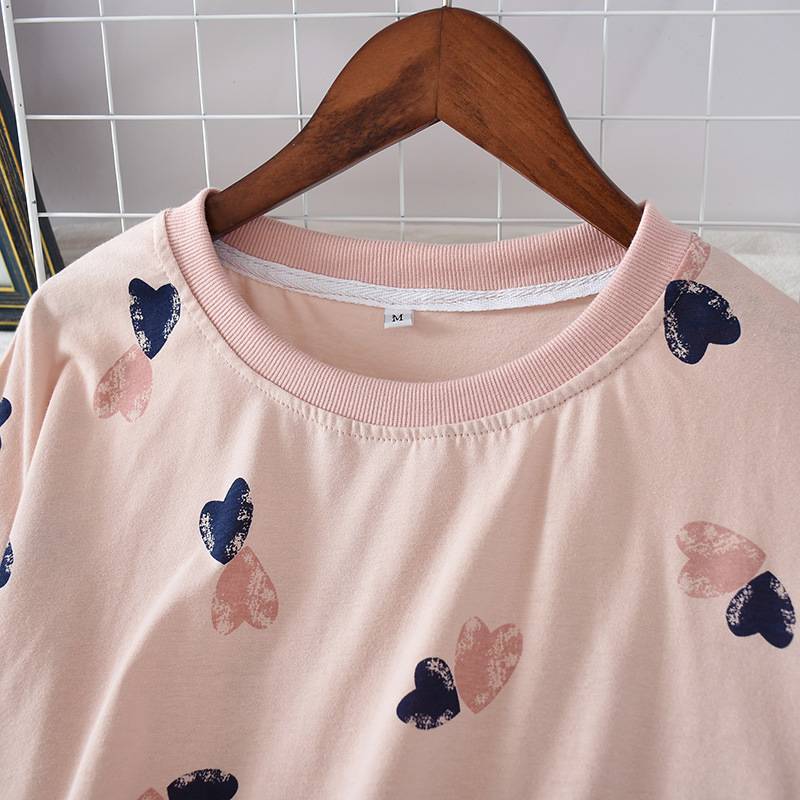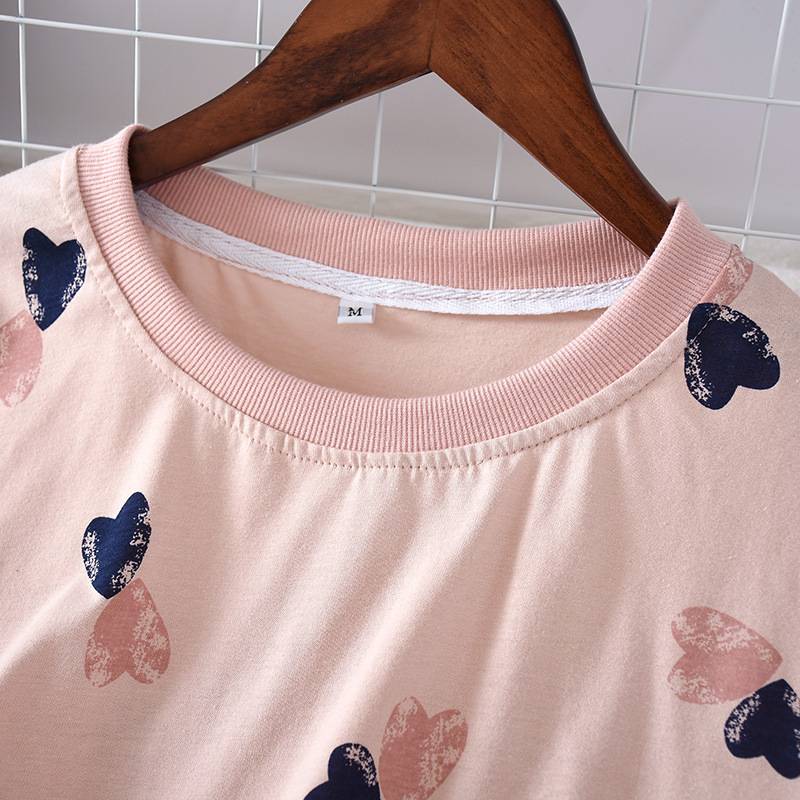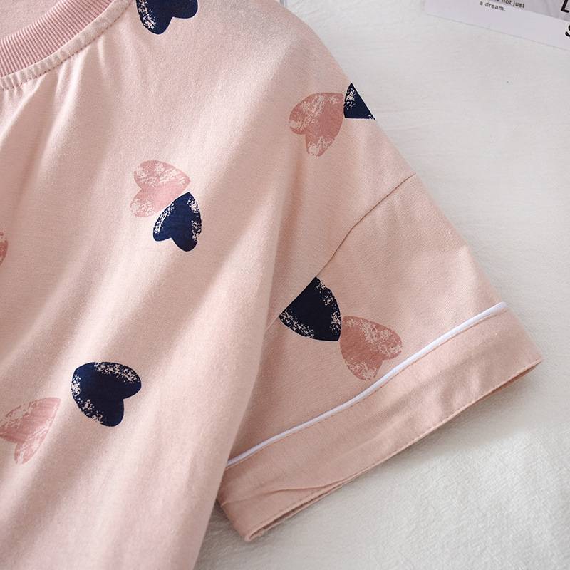 Women's Pajamas Cotton Sleepwear Suit Home Clothes Heart Print Pijama Mujer Summer Pyjamas Femme Nightgown