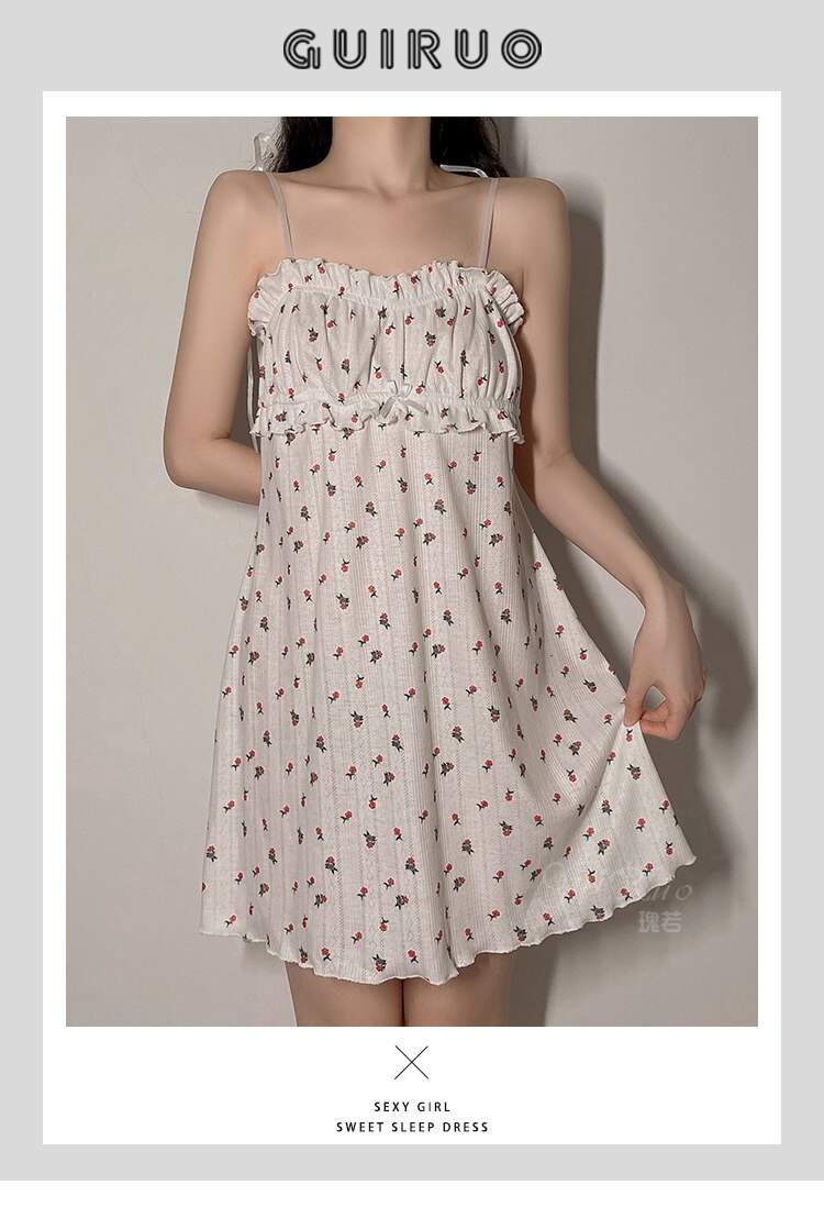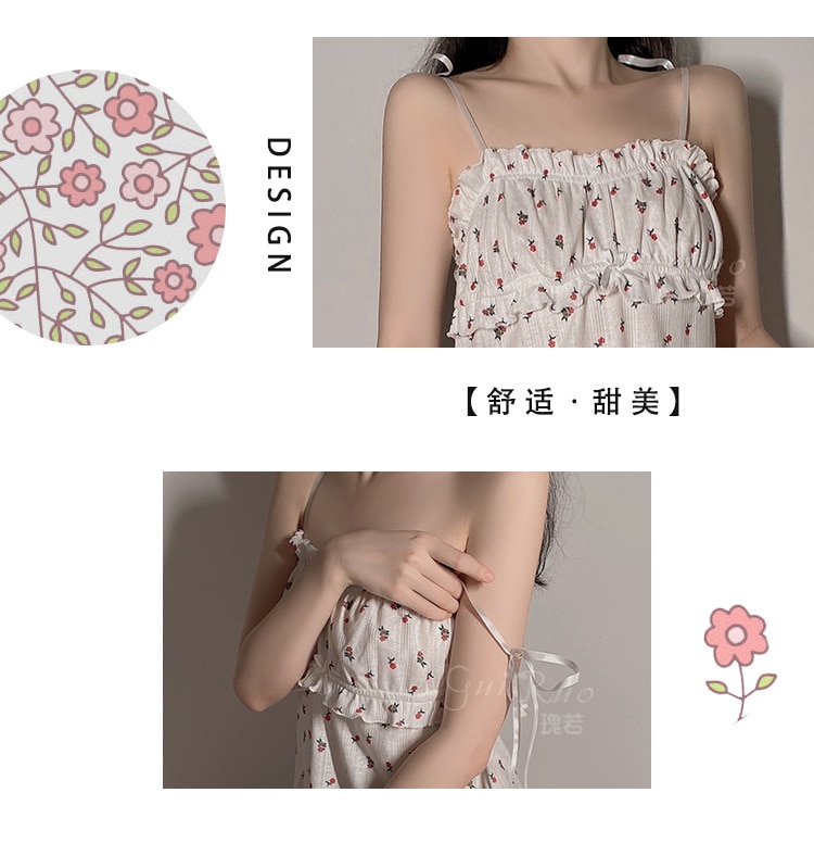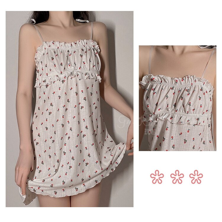Women's Sexy Sweet Nightdress Slip Sleeveless Lovely Nightgowns Femme Skirt Thong Set Korean Japanese Girls Cute Sleeping Dress