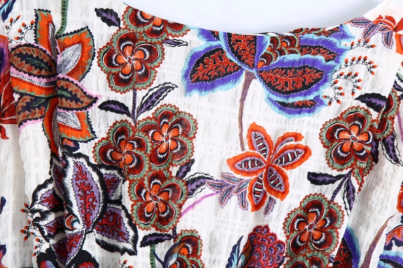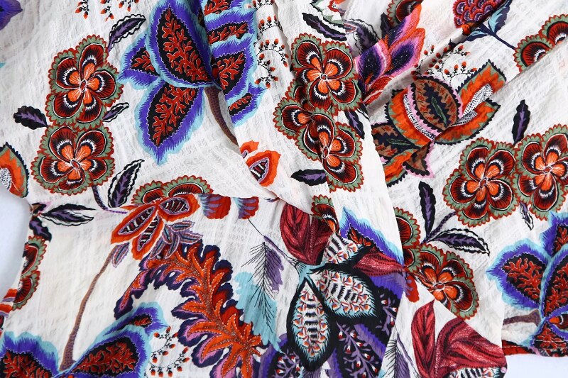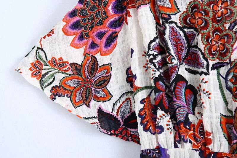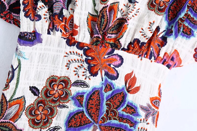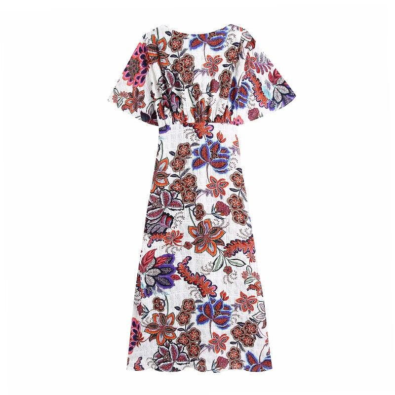 Women Boho Style Floral Printed Midi Dresses V Neck Short Sleeve Vintage Dresses Female Elegant A Line Party Dress