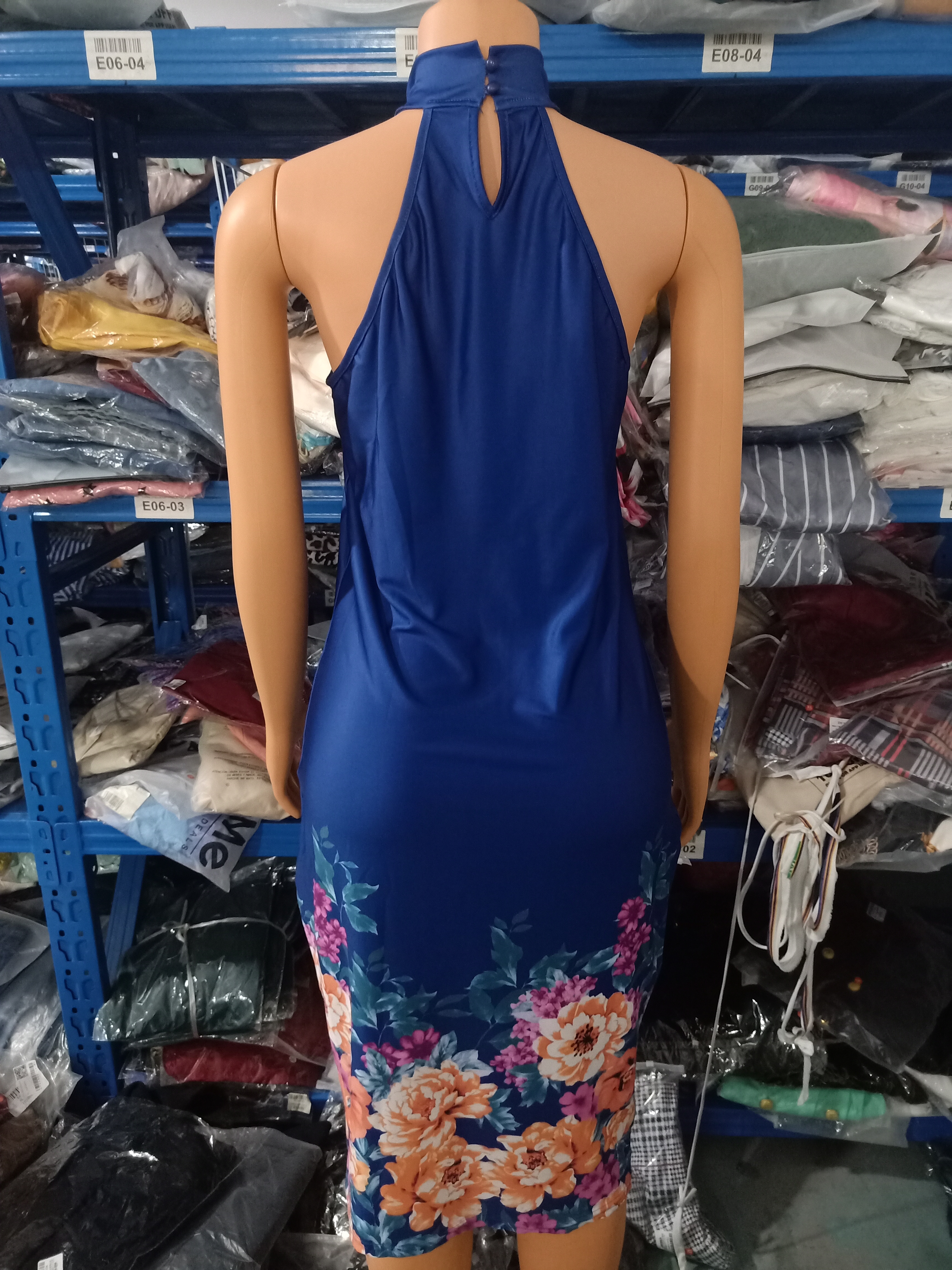 Women's Dresses Summer Fashion Floral Print High Neck Sleeveless Sexy Bodycon Daily Midi Dress