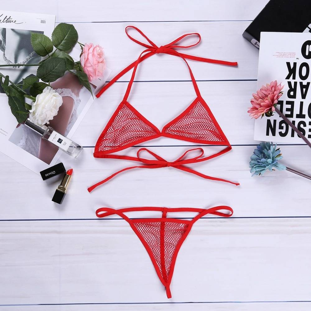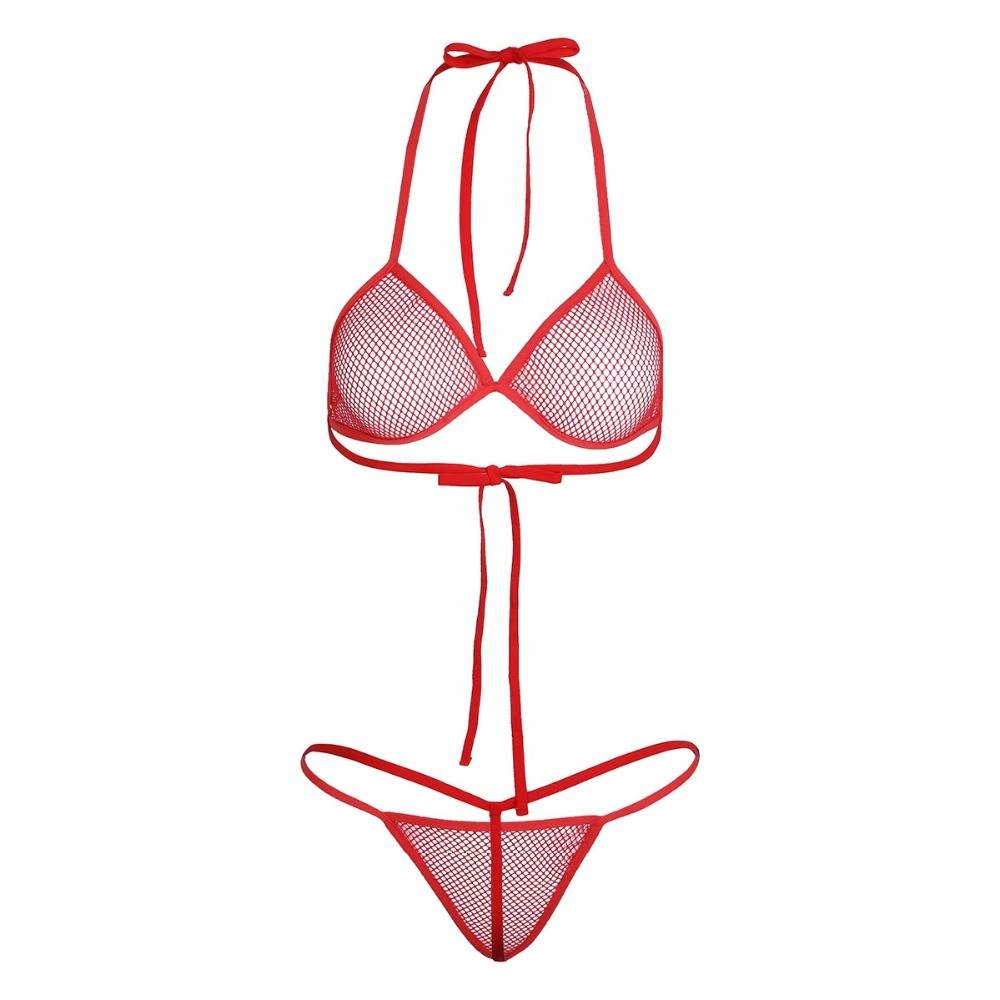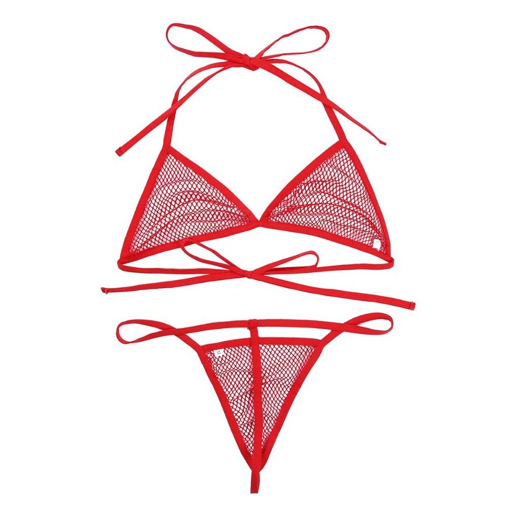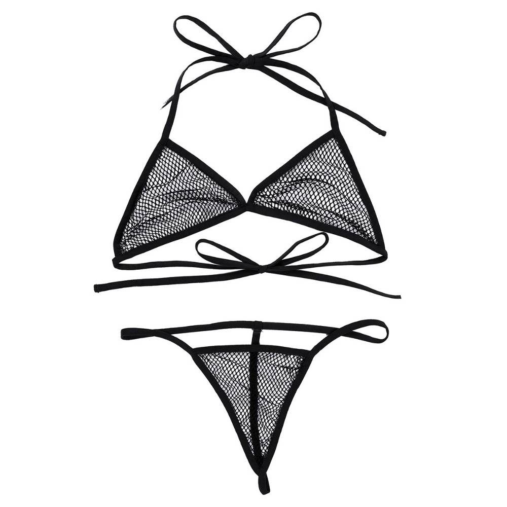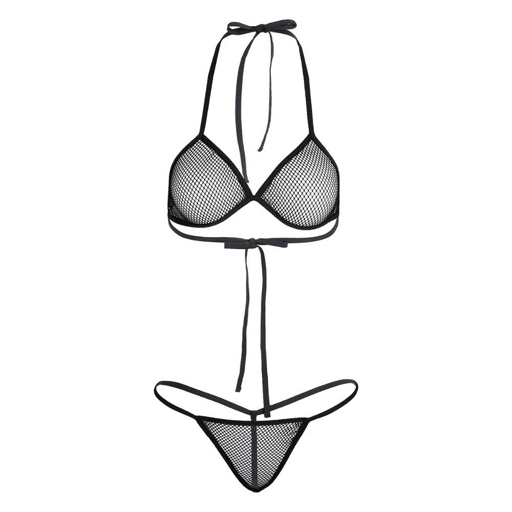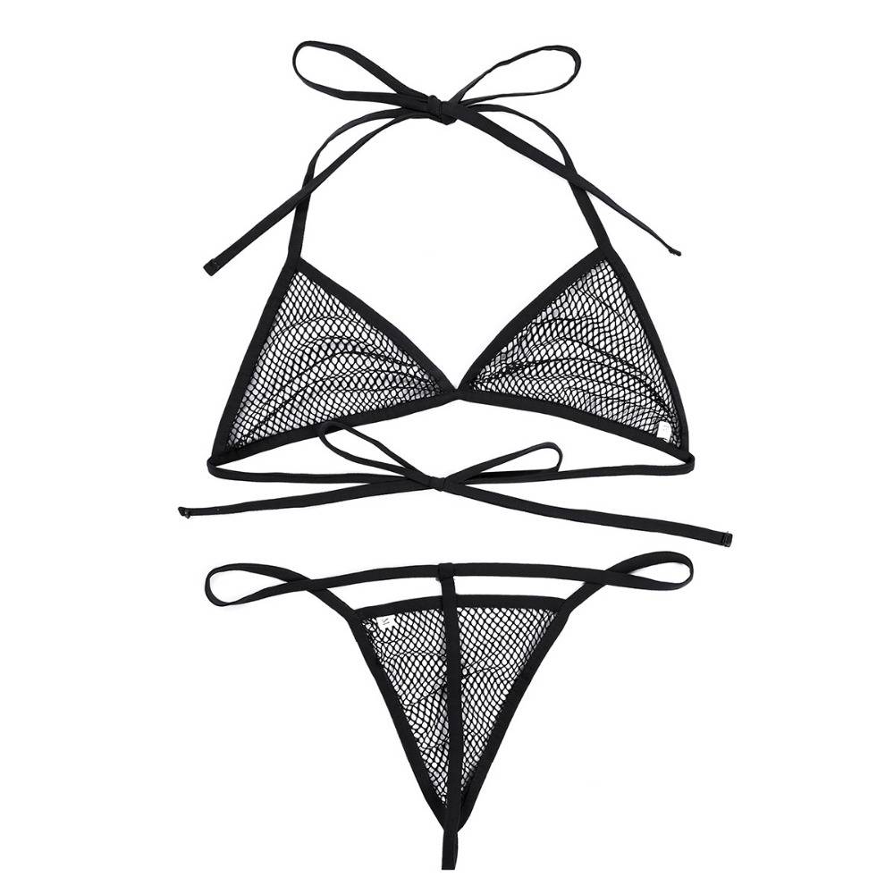 Women Lingerie Fishnet See through Micro Mini Bikini Bra Top & G String Thong Swimming Suit Adult Female Swimwear