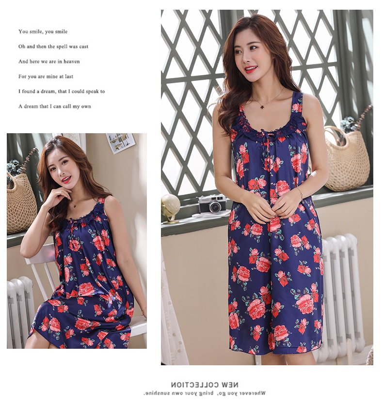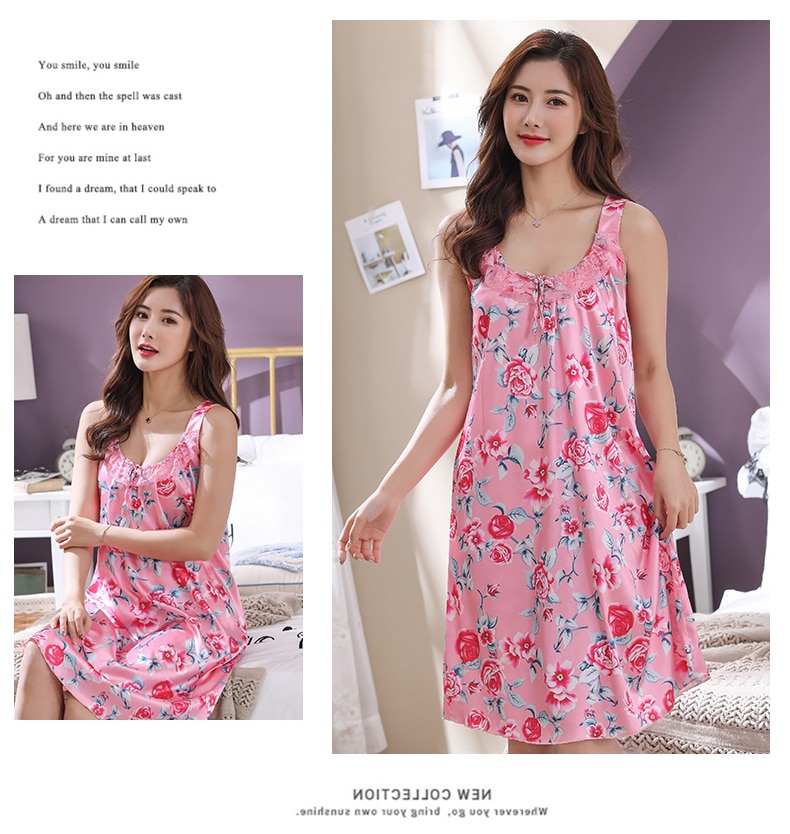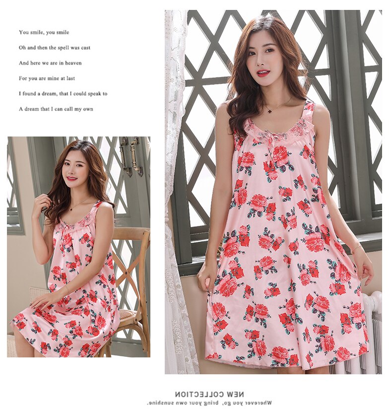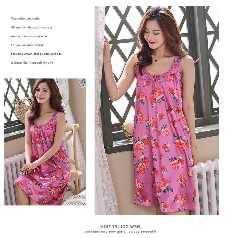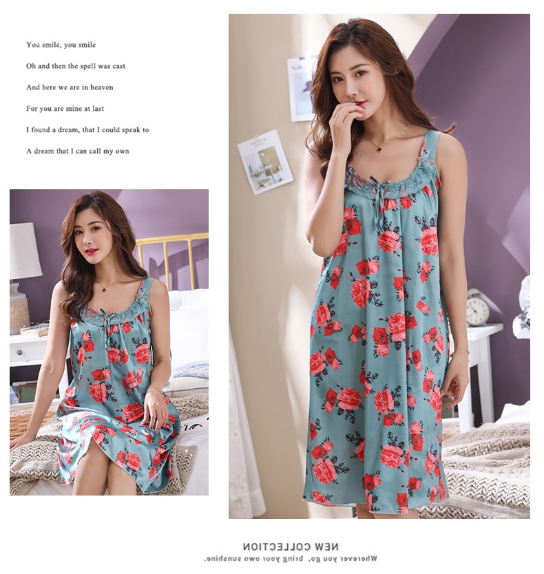 Women Nightgowns Lace Silk Sleepwear nightwear Pyjama Women home clothing sleepwear female Nightdress sexy lingerie Gown Robe5XL