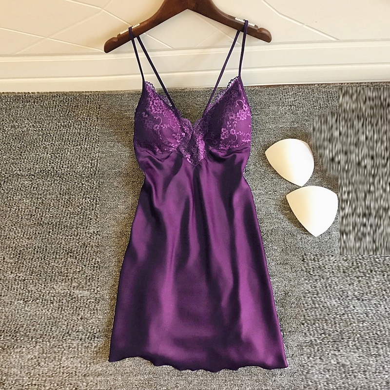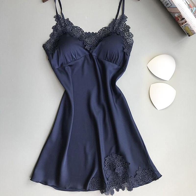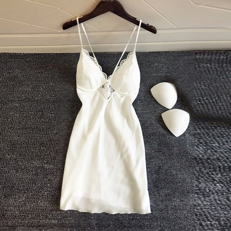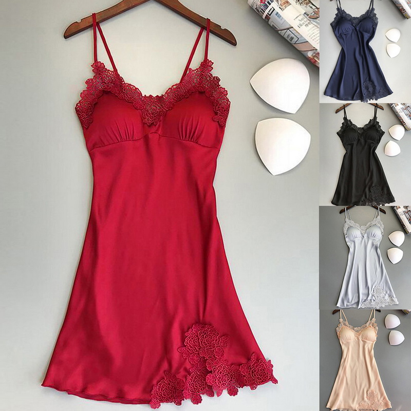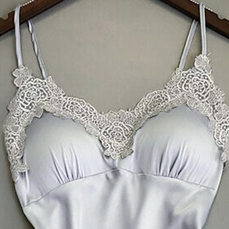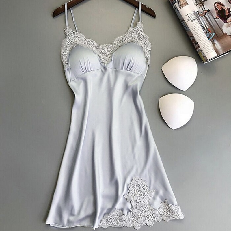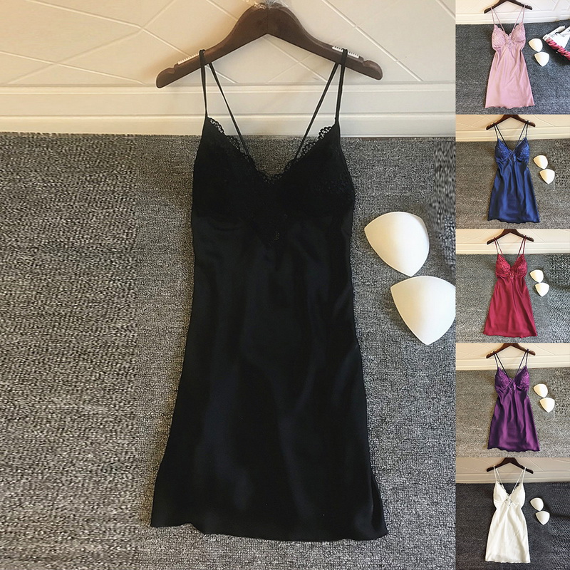 Women Nightgowns Sexy Nightwear Lace Patchwork Camisola Lingerie Nighty Wedding Silk Dress Sleep Wear Nightdress Clothes 5Colors.