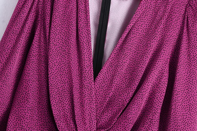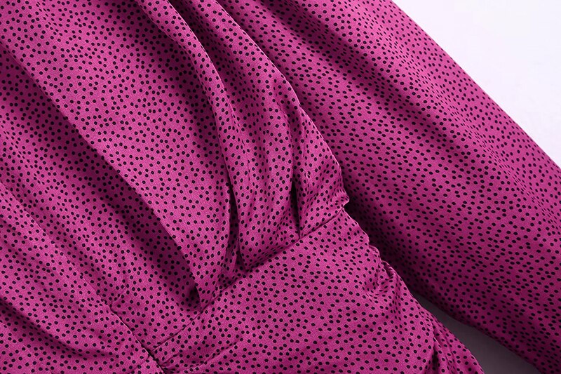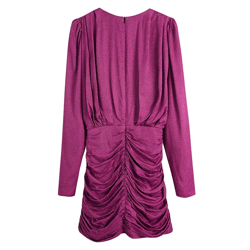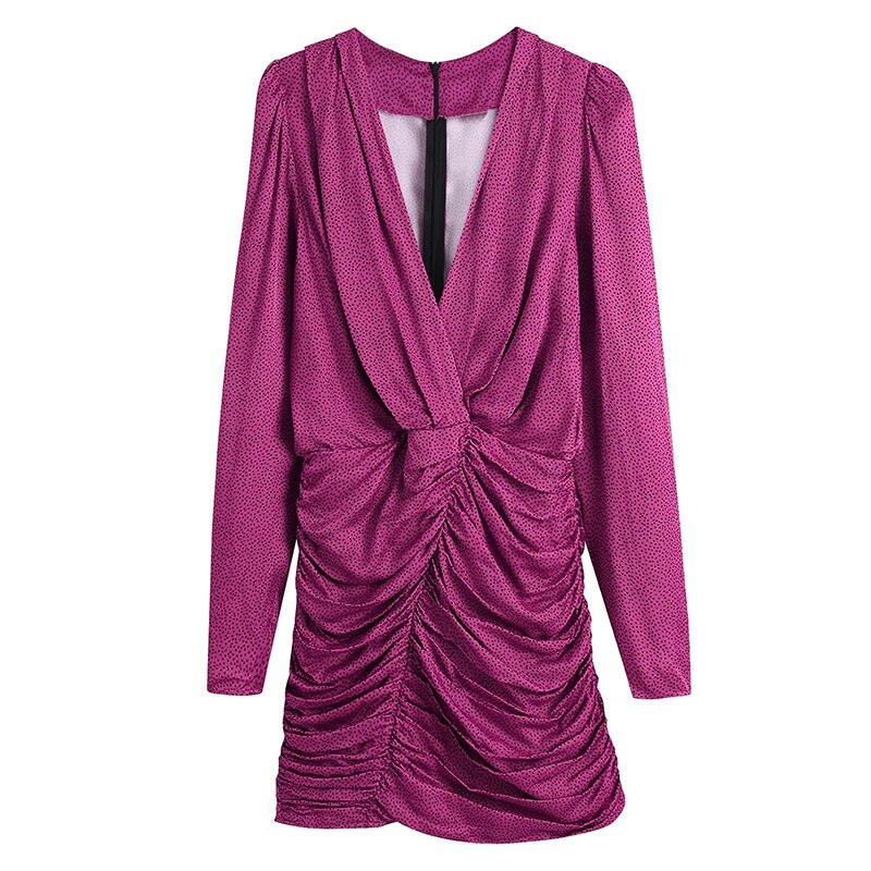 Women Sexy Deep V Neck Mini Dresses Vintage Dot Printed Long Sleeve Party Dresses Female Chic Pleated Bodycon Dresses