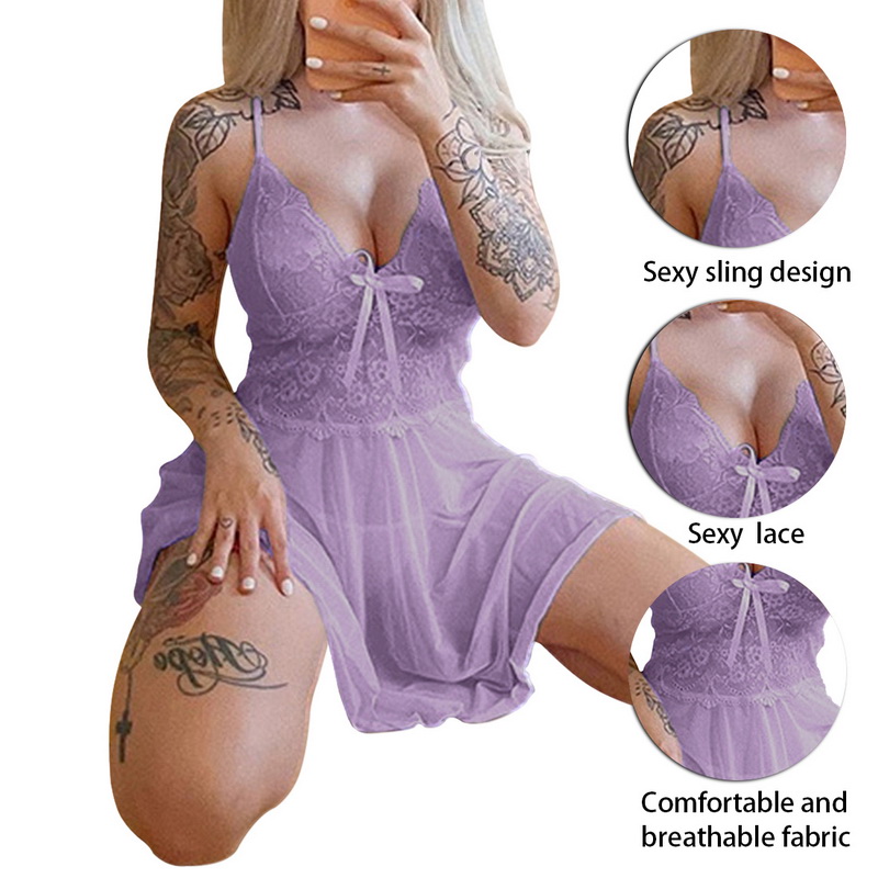 Ladies Sexy Halter Hollow Low Collar Lace Pajama Panty Set